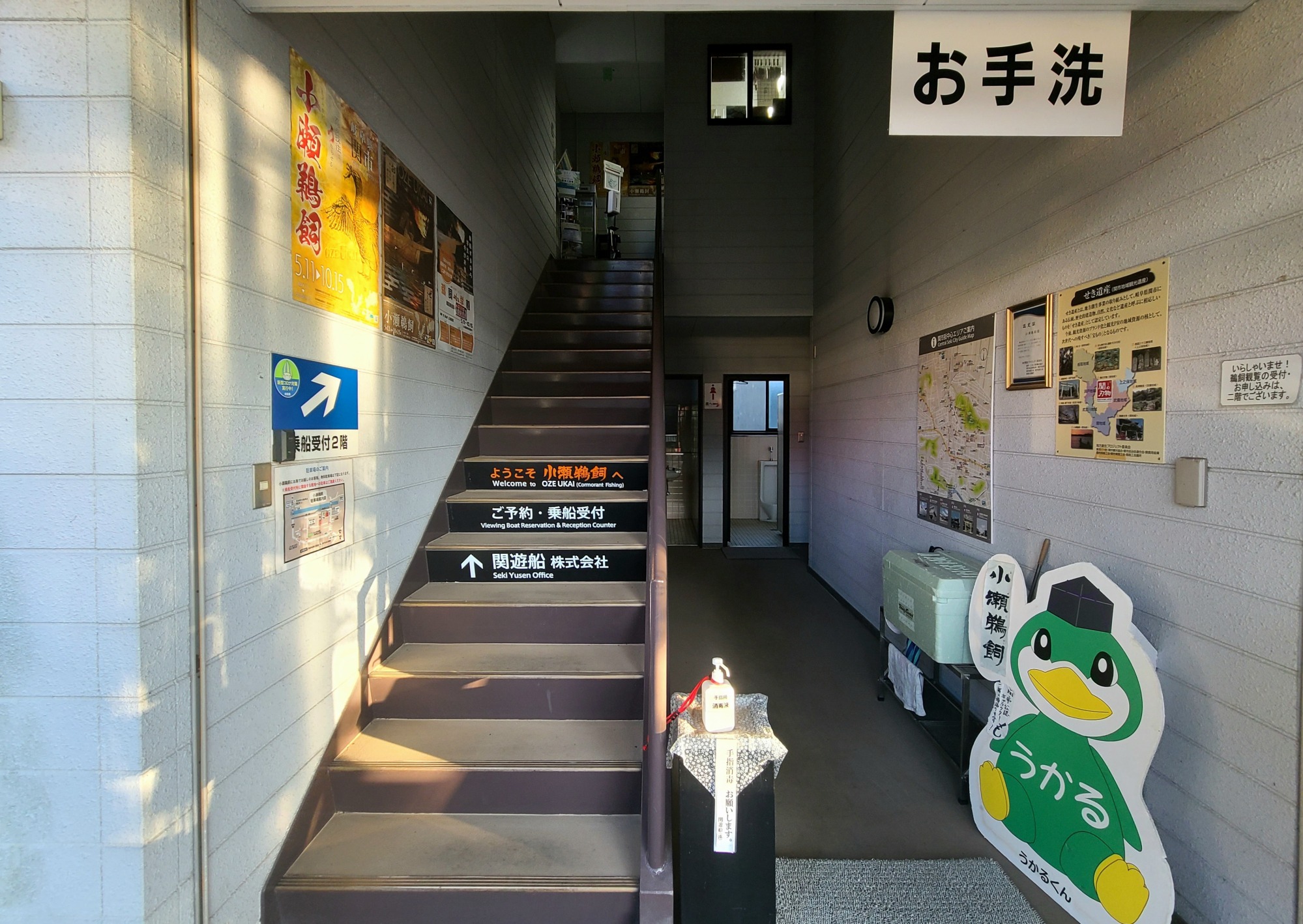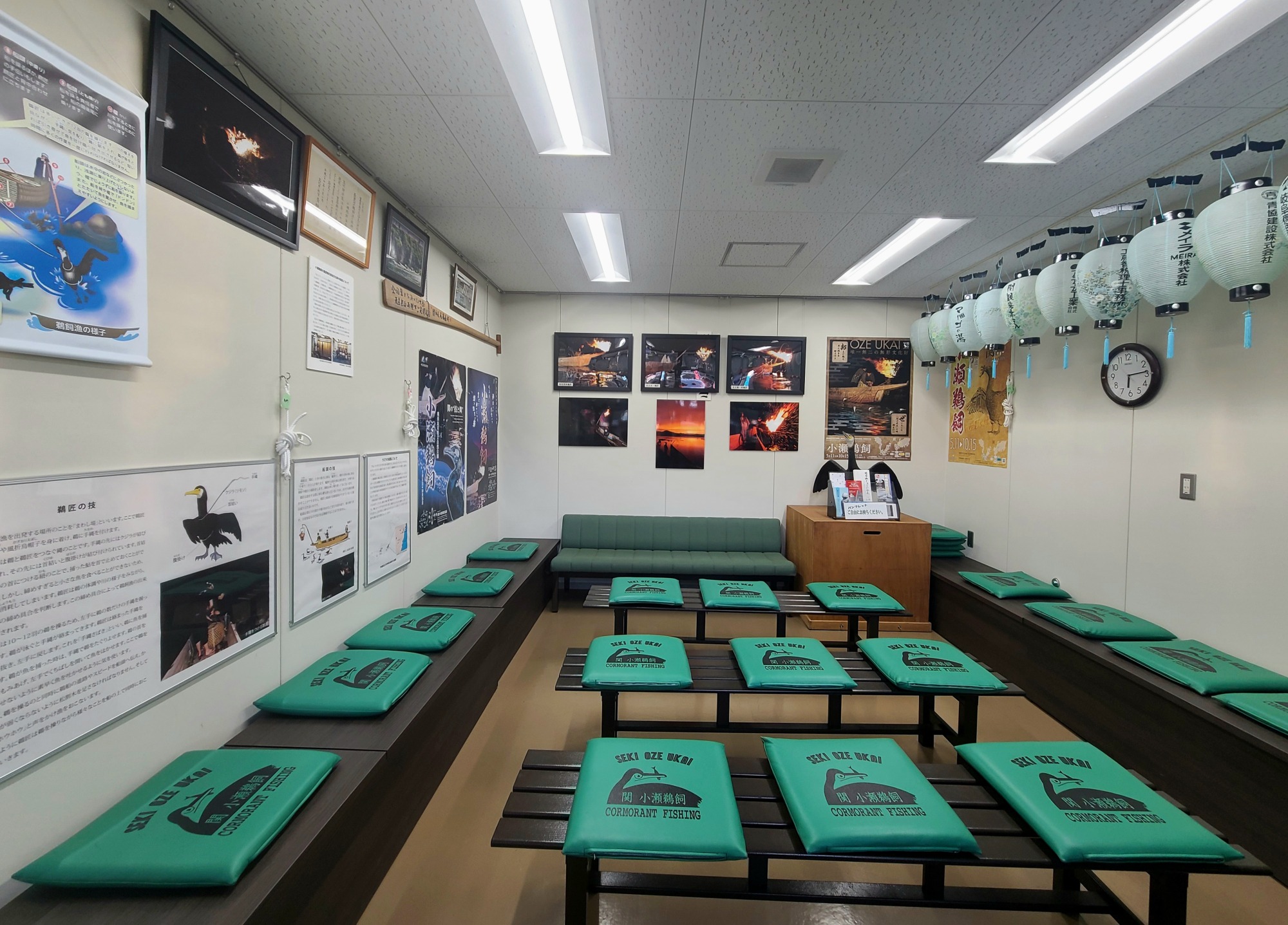 乗船受付の施設には待合室やトイレも完備されており、涼しい場所で待ち時間を過ごせます。待合室内には関市のパンフレットが置かれていたり、小瀬鵜飼の写真が展示がされています。