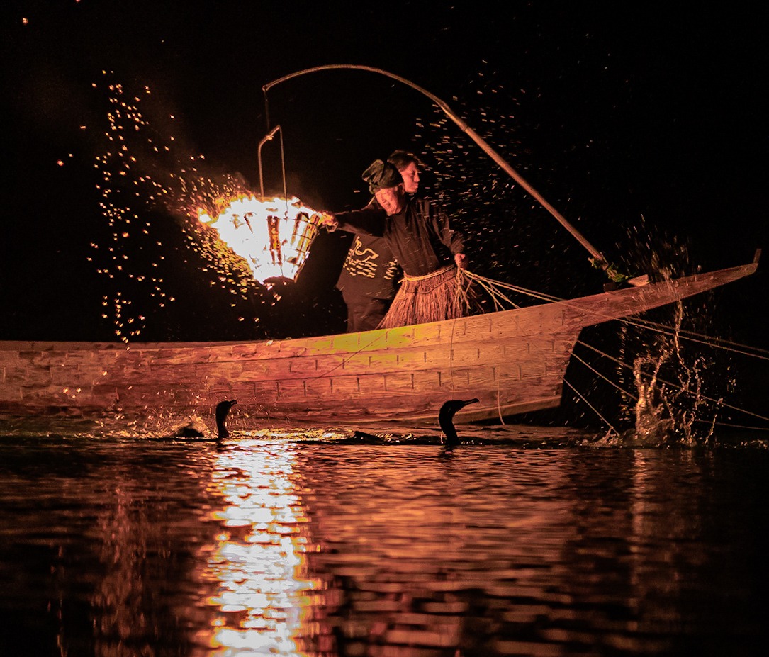 漆黒の闇を照らす幻想的なかがり火「小瀬鵜飼」