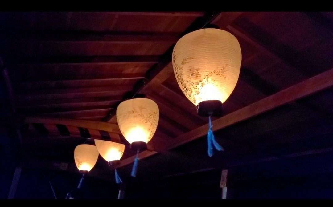 屋形船をやさしく照らす提灯の灯り。風に揺れる提灯の灯りが幻想的な世界を包みます。