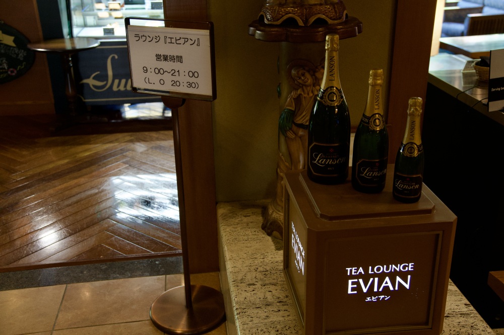 一度訪れたことがあるのと、パフェを食べたい気分だったので、まずは水明館さんのロビーラウンジ「エビアン」へ。