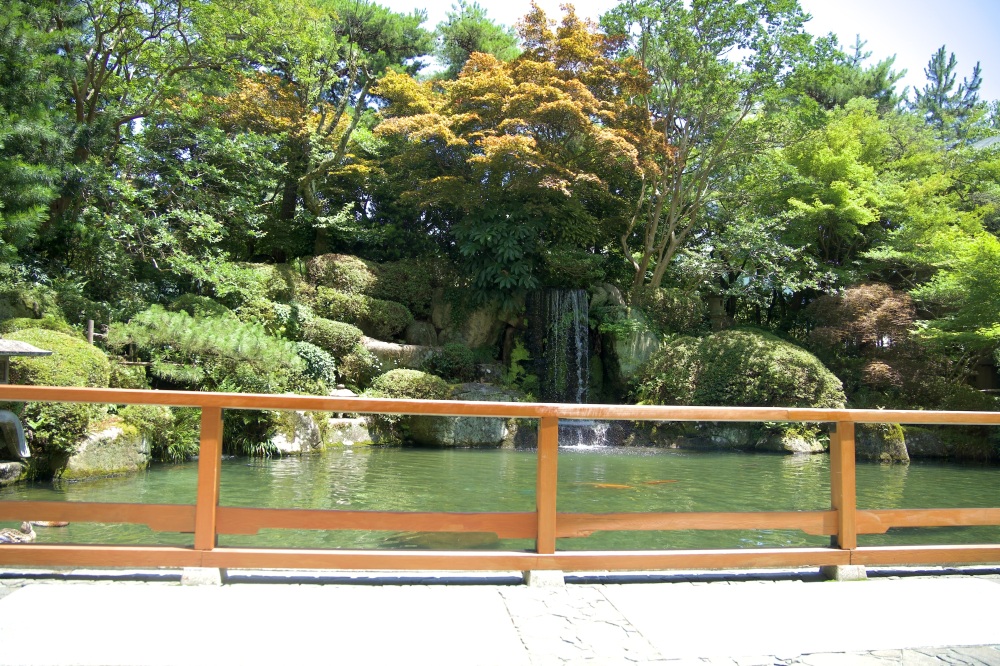 そして、この景色の中で食べられたことに大満足。池には生まれも育ちも水明館の合鴨が泳いでいて、立派な鯉もいました。