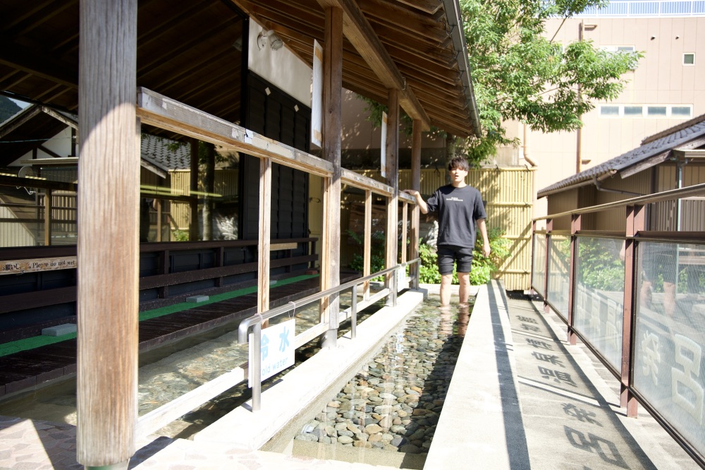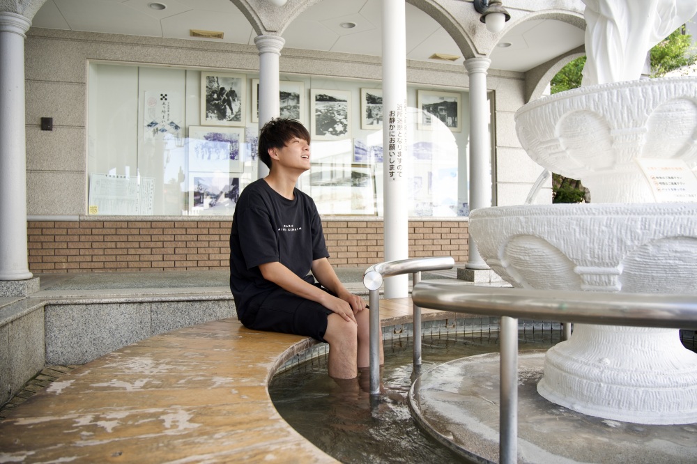 当然ですが、旅行に来ている方や地元の方と一緒になり、「どこから来たの?」とか「仕事は何をしとるの?」とか、足湯をしながら世間話をしました。