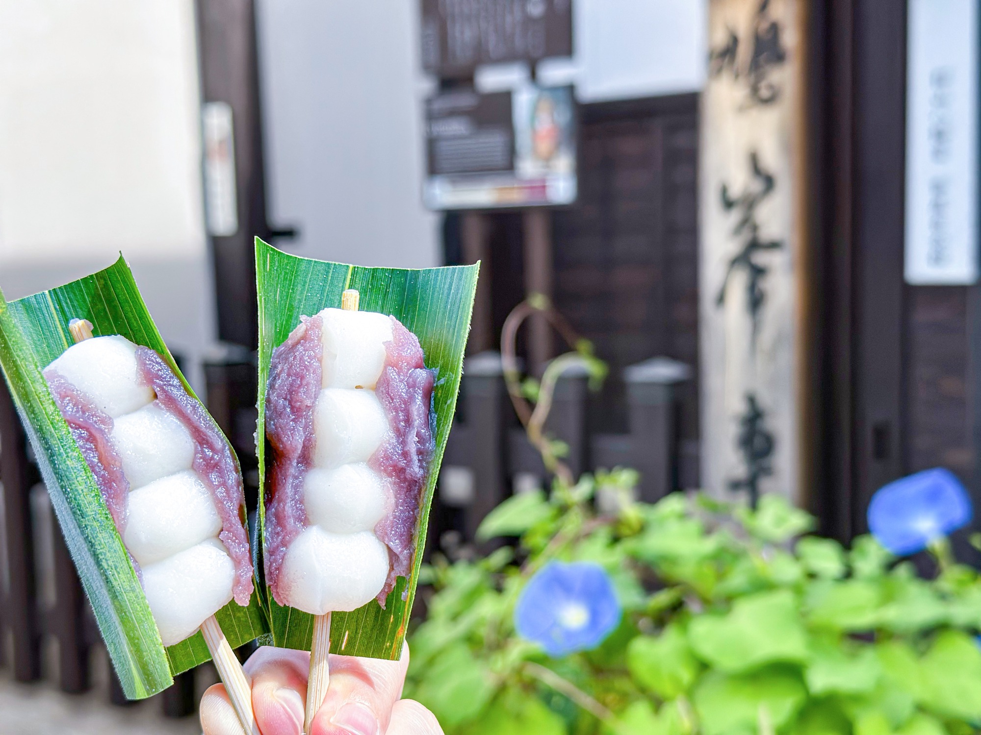 笹に包まれて良い香りな上、街並みにも映える、私の大好きなお団子です。