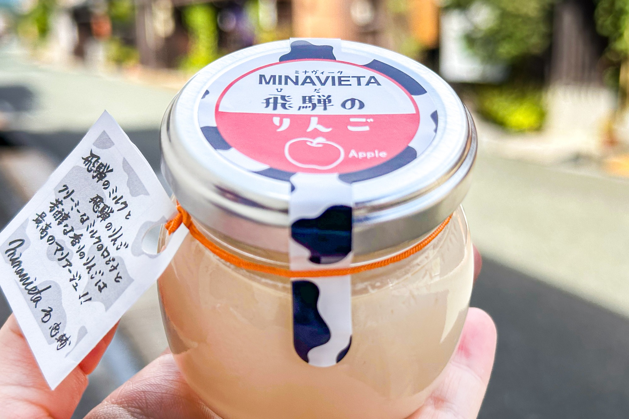 その中で私が気になったのが、高山のイタリアン「MINAVIETA(ミナヴィータ)」×じゅげむコラボ商品と書かれたスイーツ「飛騨のりんご」です。
