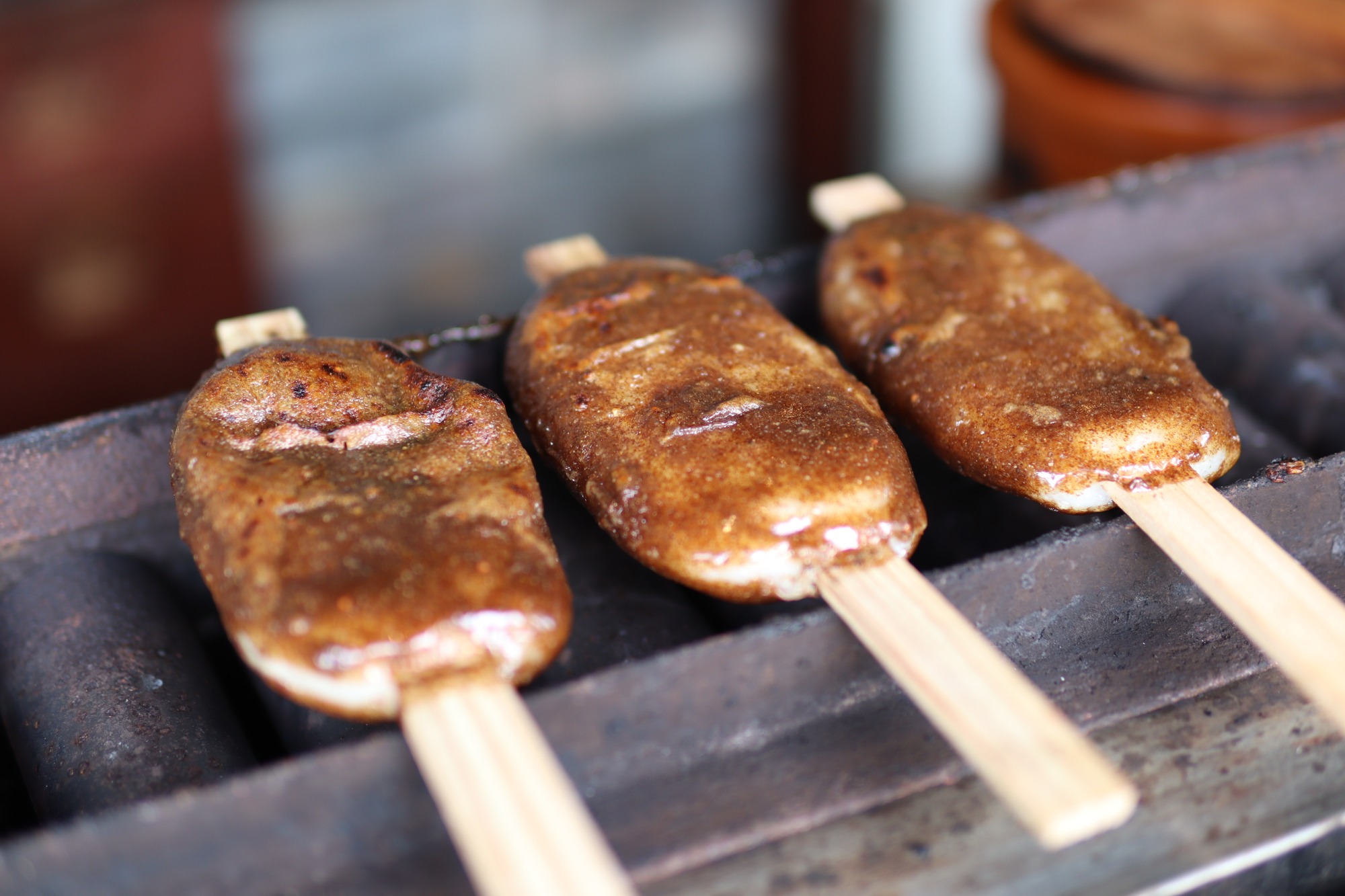 飛騨のお米の甘さによく合う、香ばしいえごまの濃厚なタレ。たっぷりつけてくださるので、満足感が半端ないです(個人の感想です)。