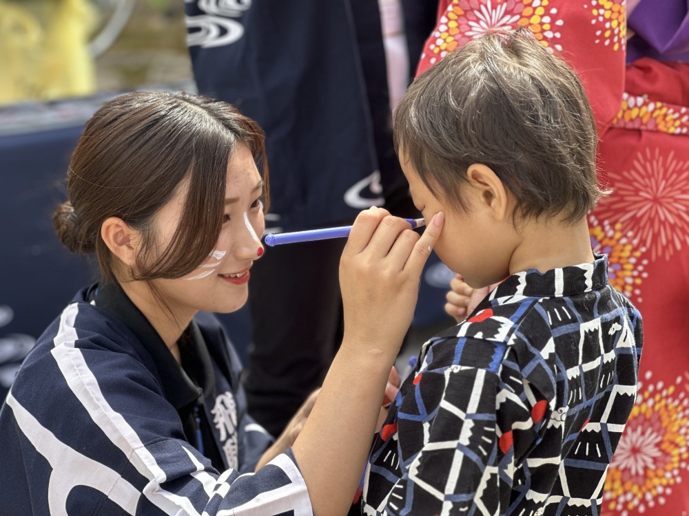 メイン会場である「まつり広場」に到着したら、まずは無料のきつねメイクをしてもらいましょう!(もちろん強制ではありません!)