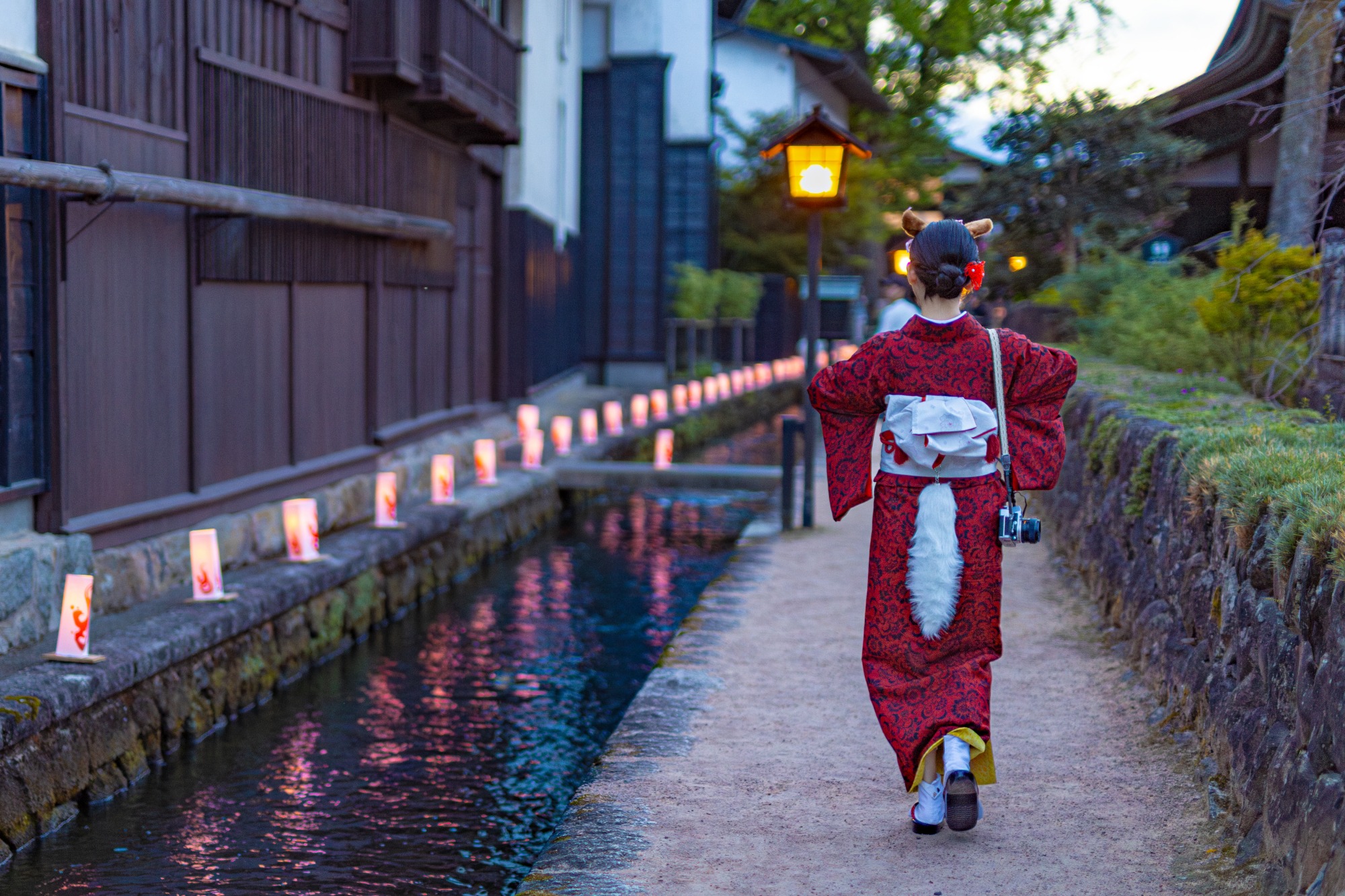 毎年9月第4土曜日に開催される「きつね火まつり」は、地元商工会青年部が町おこしの一環として平成2年に始めたイベントで、飛騨古川に昔から伝わるおとぎ話「きつねの嫁入り物語」を現代風にアレンジしたものです。