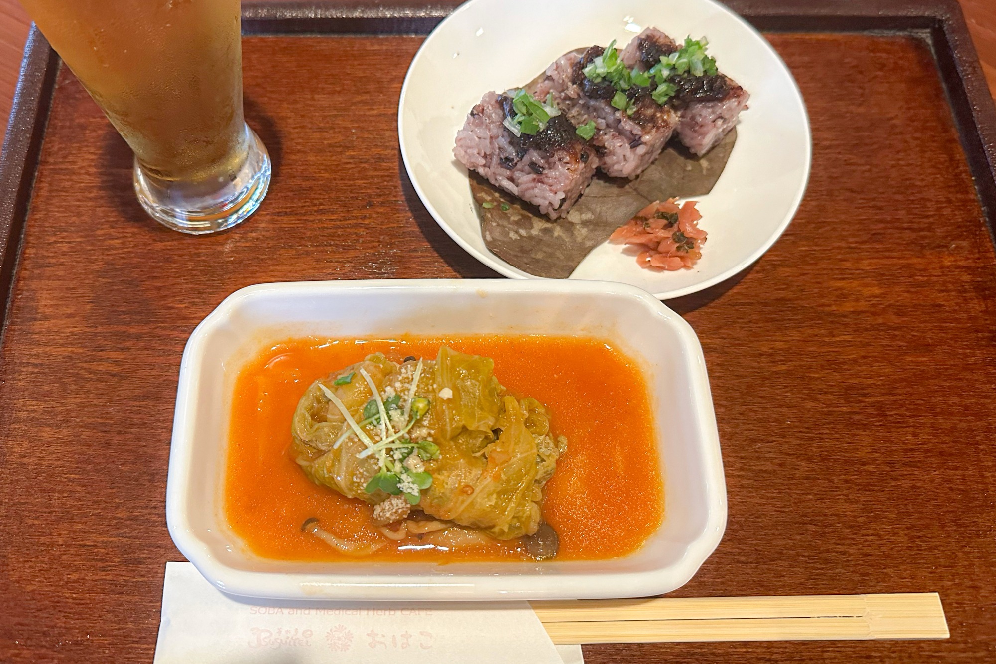 ここ「蕪水亭OHAKO」さんでは数量限定で、「朴葉味噌むすび」と「薬草ロールキャベツ」を販売していました!