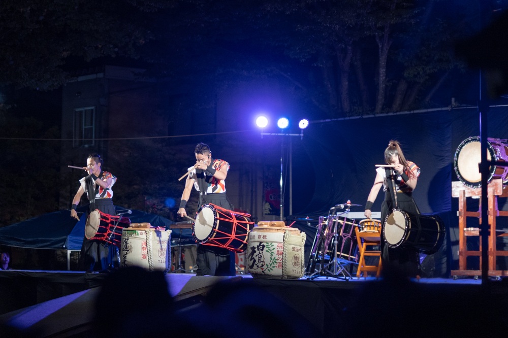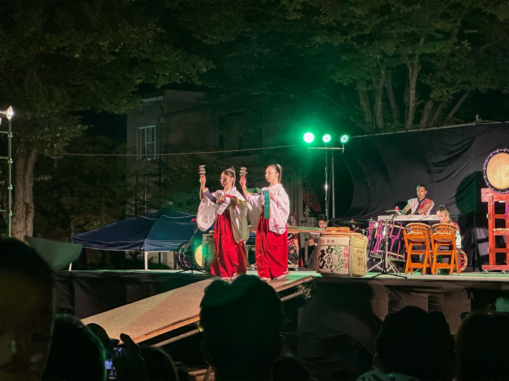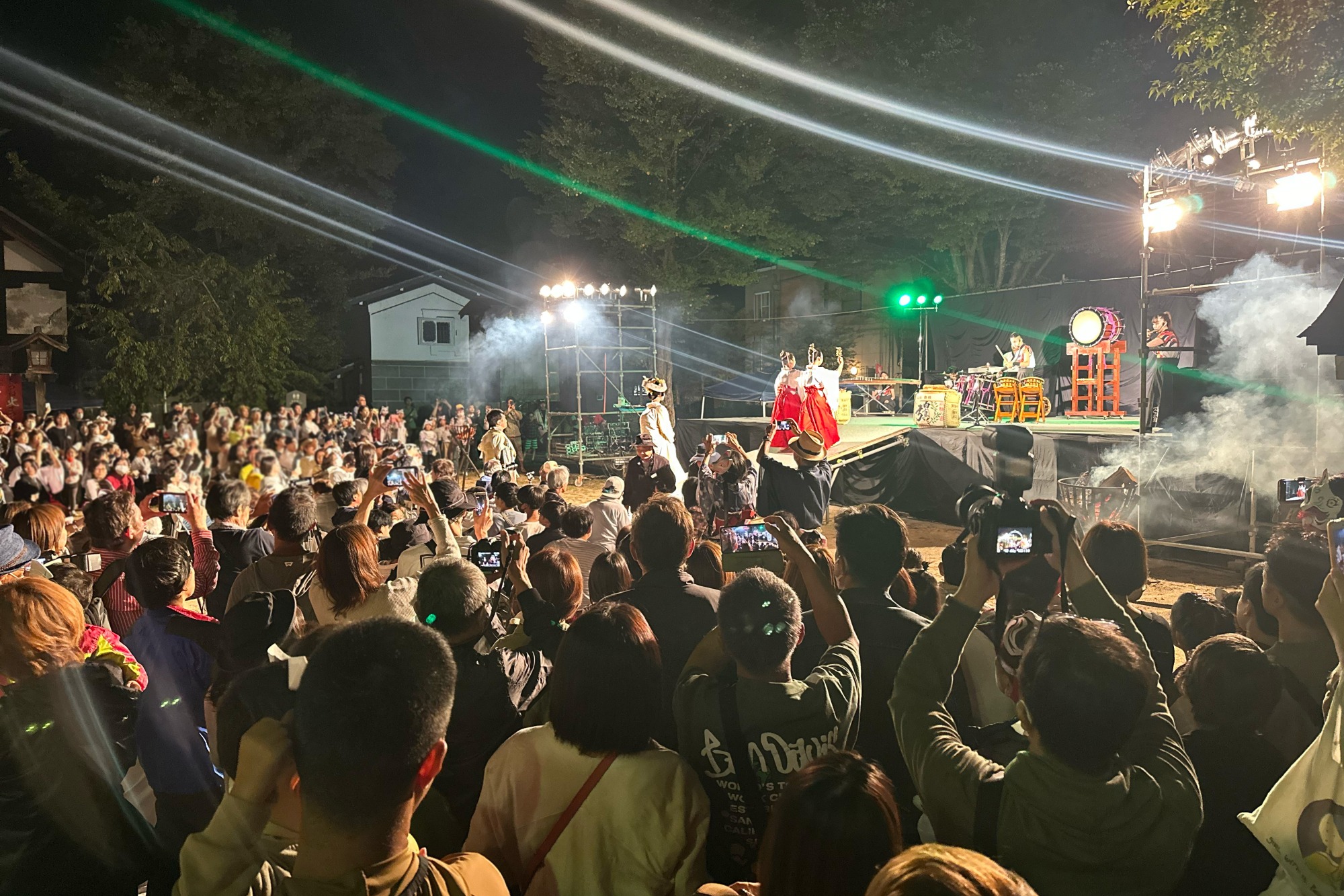 ステージ上では太鼓や巫女の舞が披露され、まつり広場はどんどん熱気に包まれていきます!