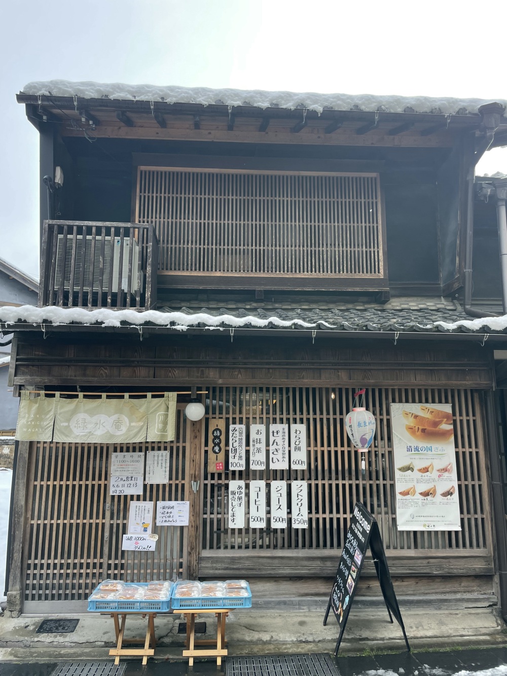 築130年の古民家カフェ。老舗旅館・十八楼の前にある緑水庵は映えスポットとしても有名。