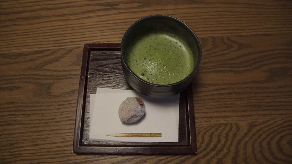 季節によっては干し柿の中に栗きんとんの入ったお菓子や、美濃加茂市の堂上蜂谷柿が付く「信長公おもてなしの湯セット」もメニューに。こちらには、豪華に金粉入りの抹茶付き。