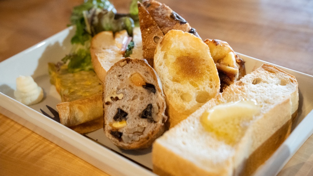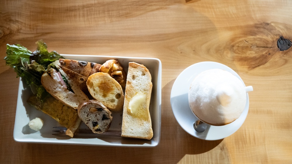 11:30までに入店できるなら、モーニングプレートを是非どうぞ。プレートにギッシリ並べられた色とりどりのパンは、ここでも何から食べようか迷ってしまう。