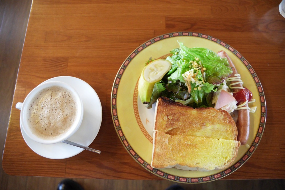 サラダやフルーツ、ソーセージが付いていて、大満足なモーニングでした。