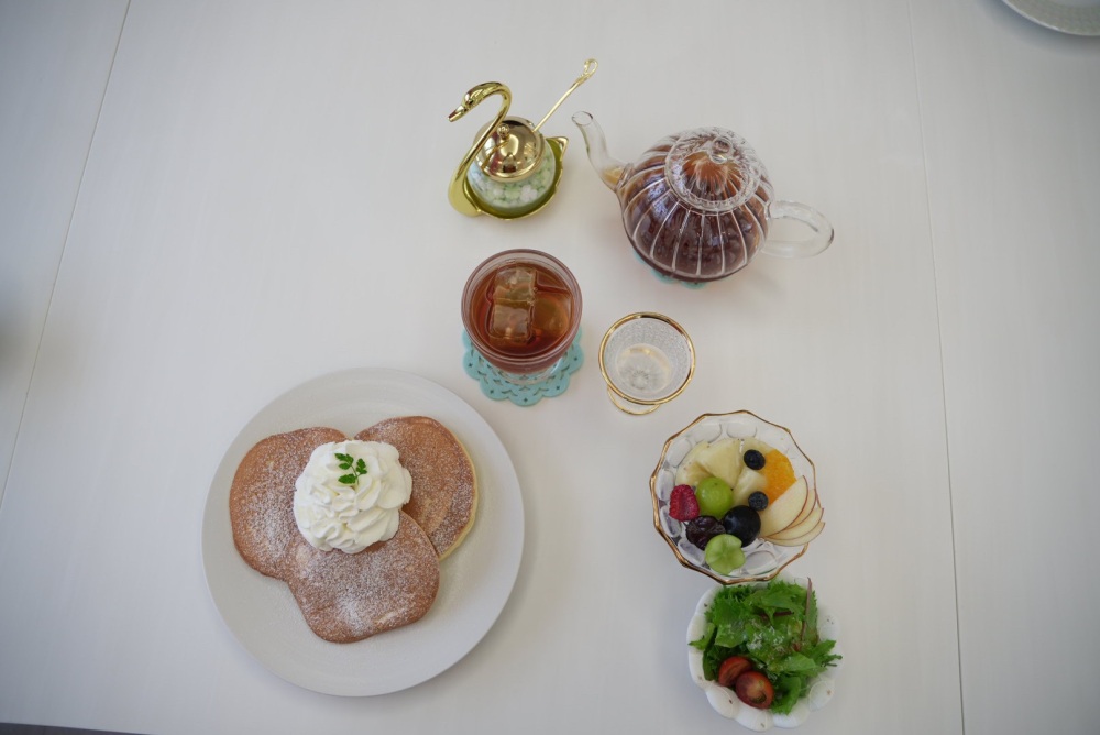 「Princess Branche Pâtisserie Kura(プリンセスブランシュパティスリークラ))」の海外のように優雅な店内で楽しめるのは、パンケーキのモーニングです。