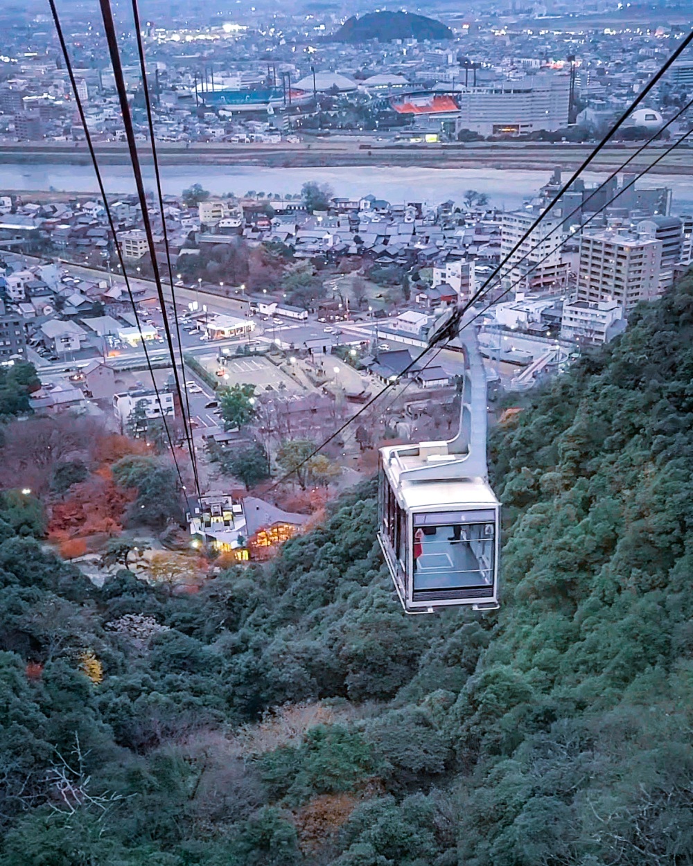 ゴールデンウィークや夏休み、秋の行楽シーズンに期間中限定で夜間営業をしている金華山ロープウェーで標高329メートルの岐阜城へ(期間中は、夜6時以降の夜間往復割引運賃あります。)。