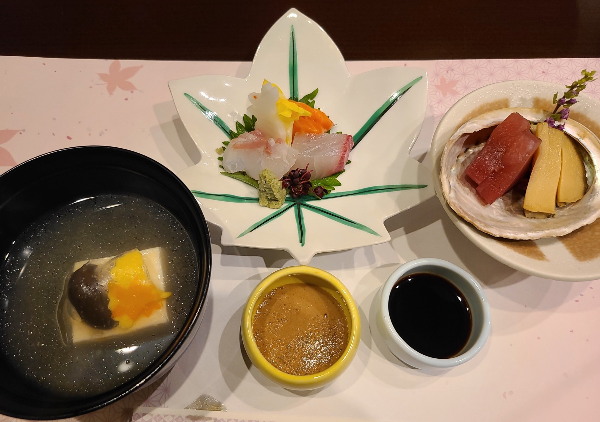 柚子真丈(しんじょ)と本日のお造り盛り合わせ。