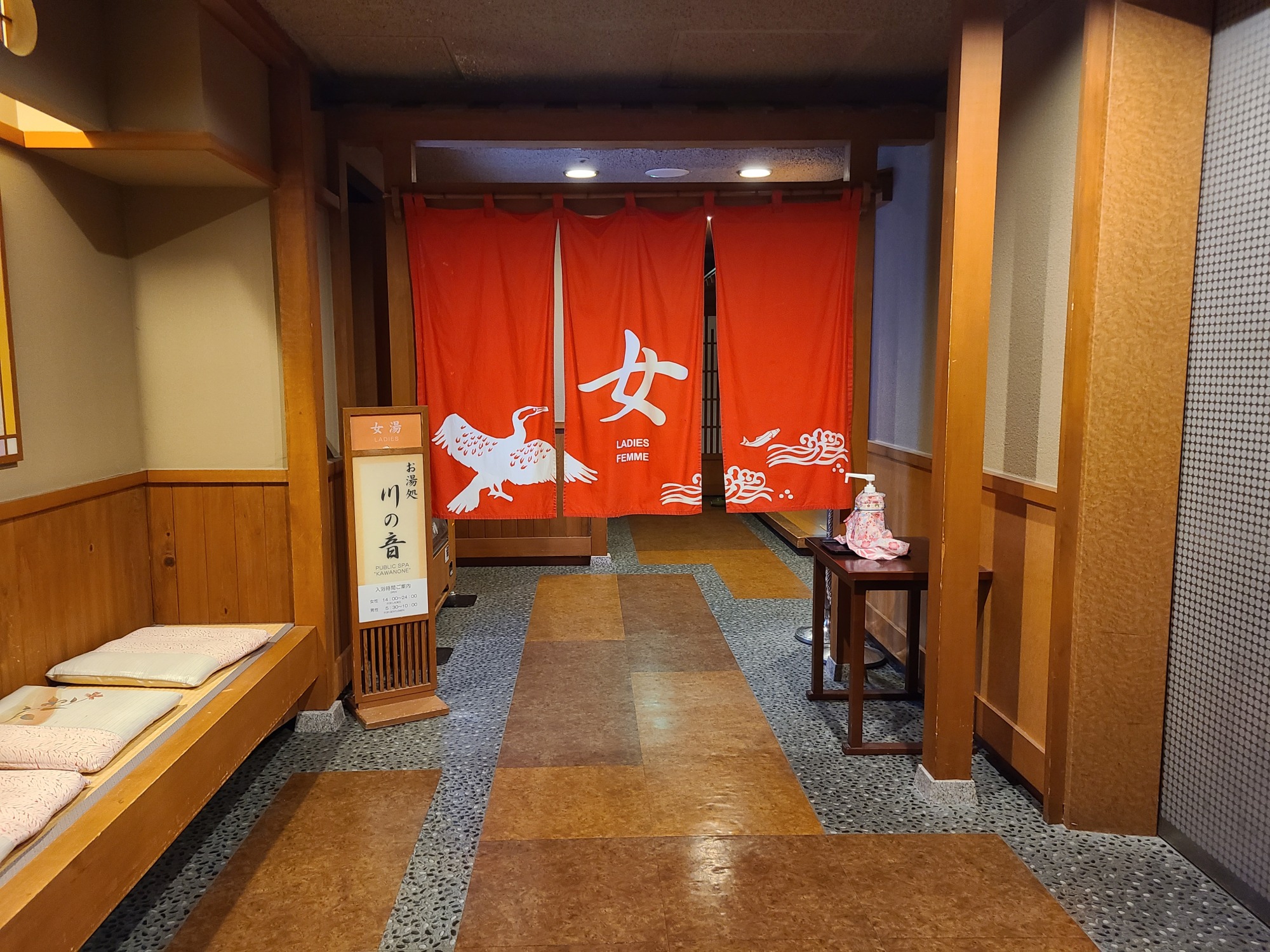 十八楼さんには「川の音」と「川の瀬」2つの大浴場があります。朝晩で男女が入れ替わるため、両方の大浴場を楽しめます。