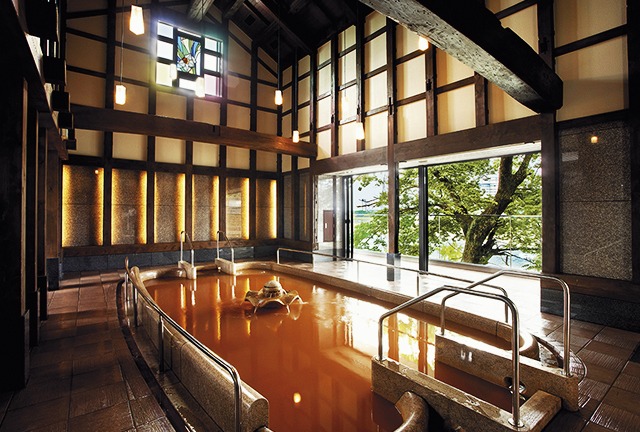 鉄分を含んだ赤褐色の長良川温泉に浸かると身体の芯から温まります。