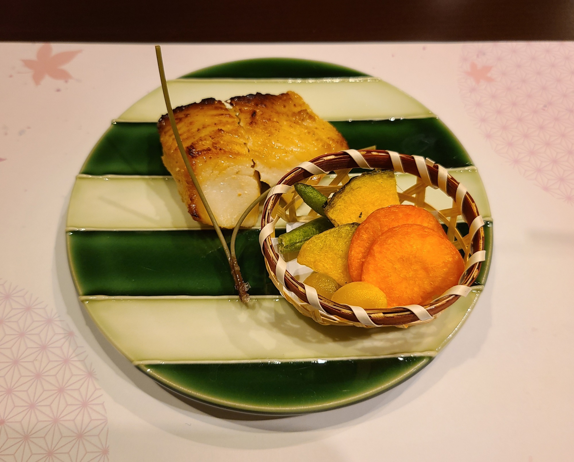上品な味わいのからす鰈の西京焼きと、野菜の美味しさをそのまま味わえる素揚げ野菜。