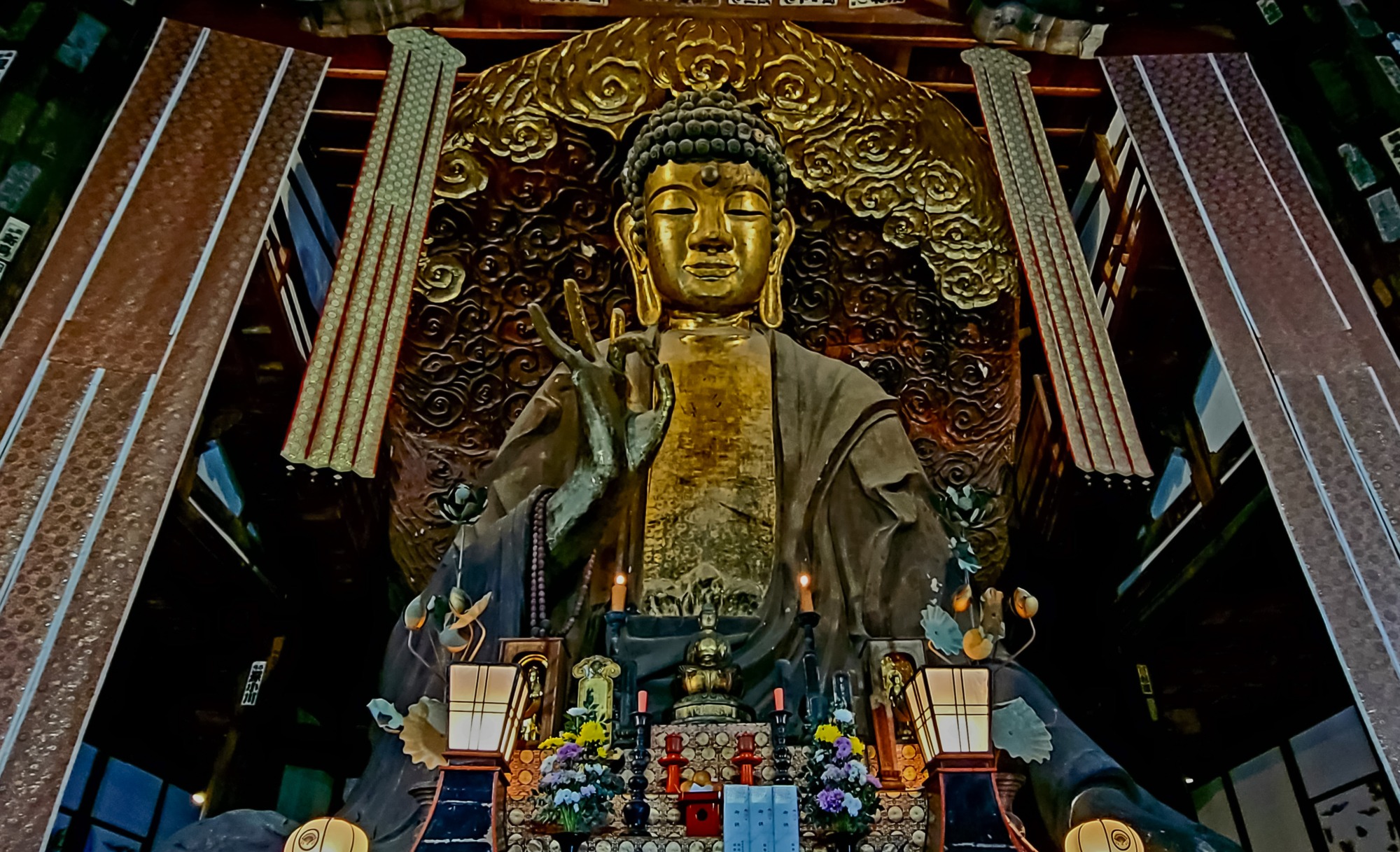 旅館から徒歩で約10分のところにある正法寺には、日本三大仏の一つに数えられる大仏があります。天保3年(1832年)4月に38年の歳月を費やして完成しました。高さが13.63mもあり、その大きさには圧倒されます。