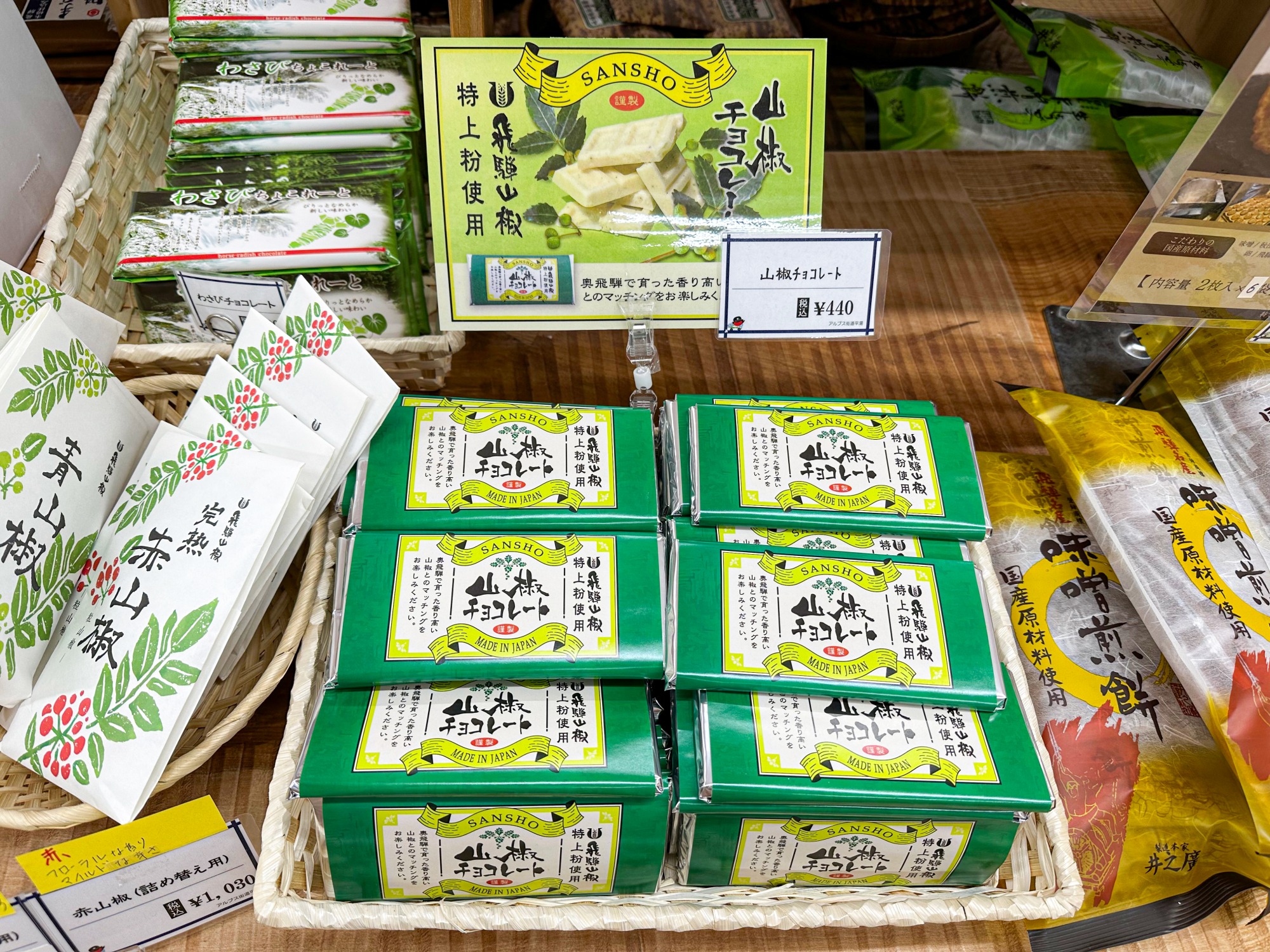 特に人気のお土産はこちら。飛騨山椒を使用した「山椒チョコレート」とのことです。