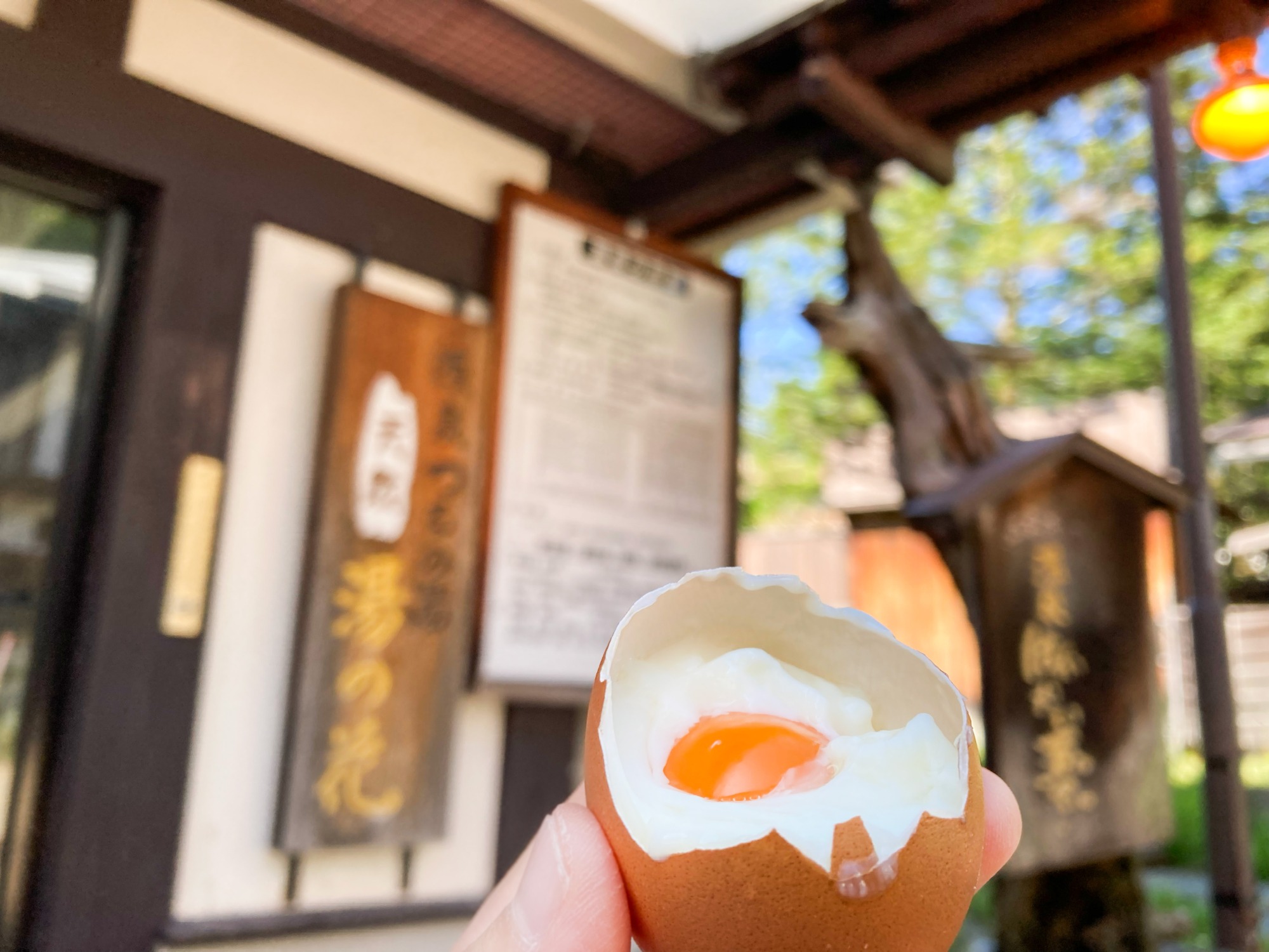 足湯から徒歩1分ほどの場所には「はんたい玉子」で有名なお店「つるや商店」があります。