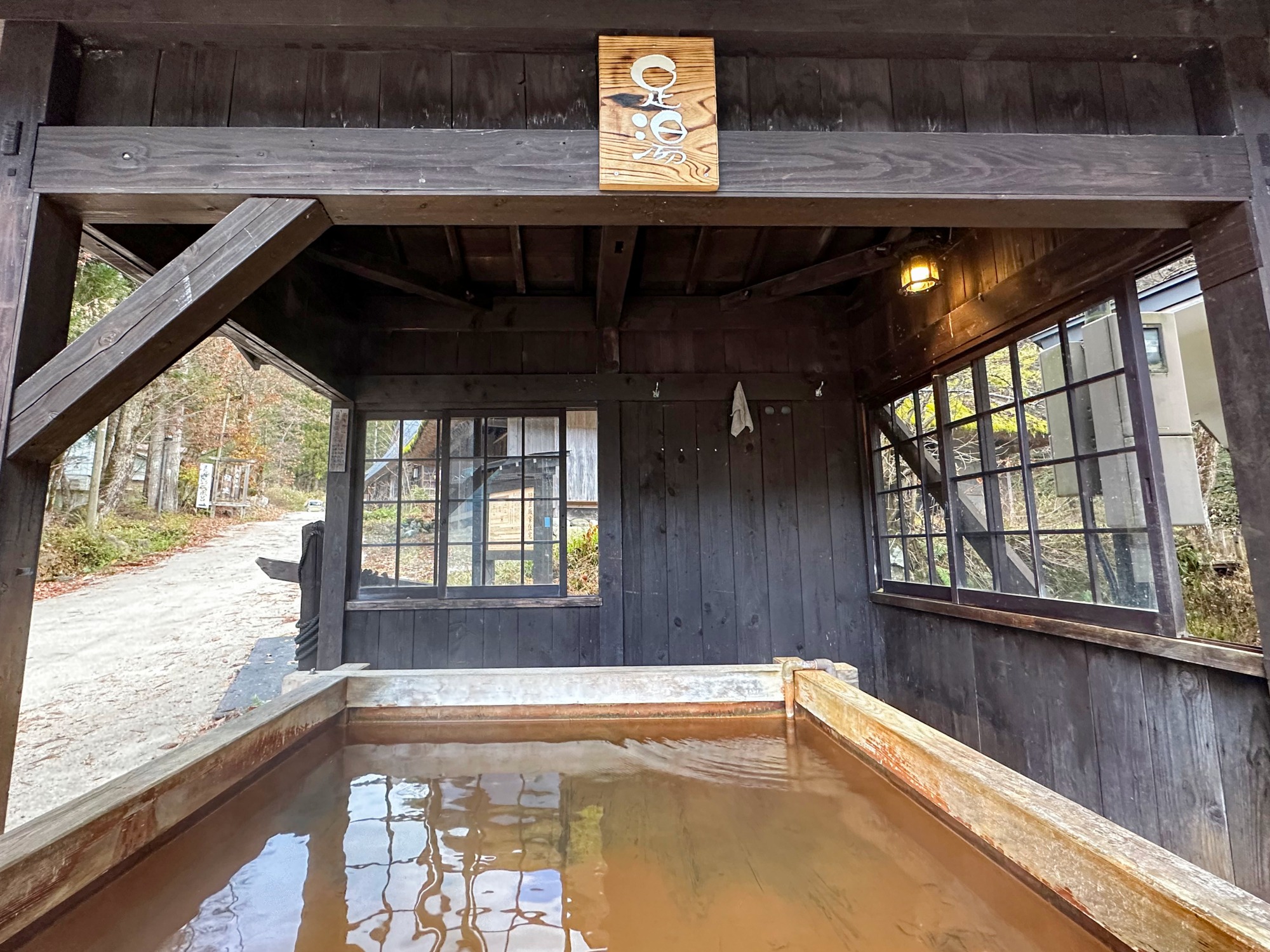 入り口付近には無料の足湯が設置されており、茶褐色の「ぬくとまり湯」が特徴です。