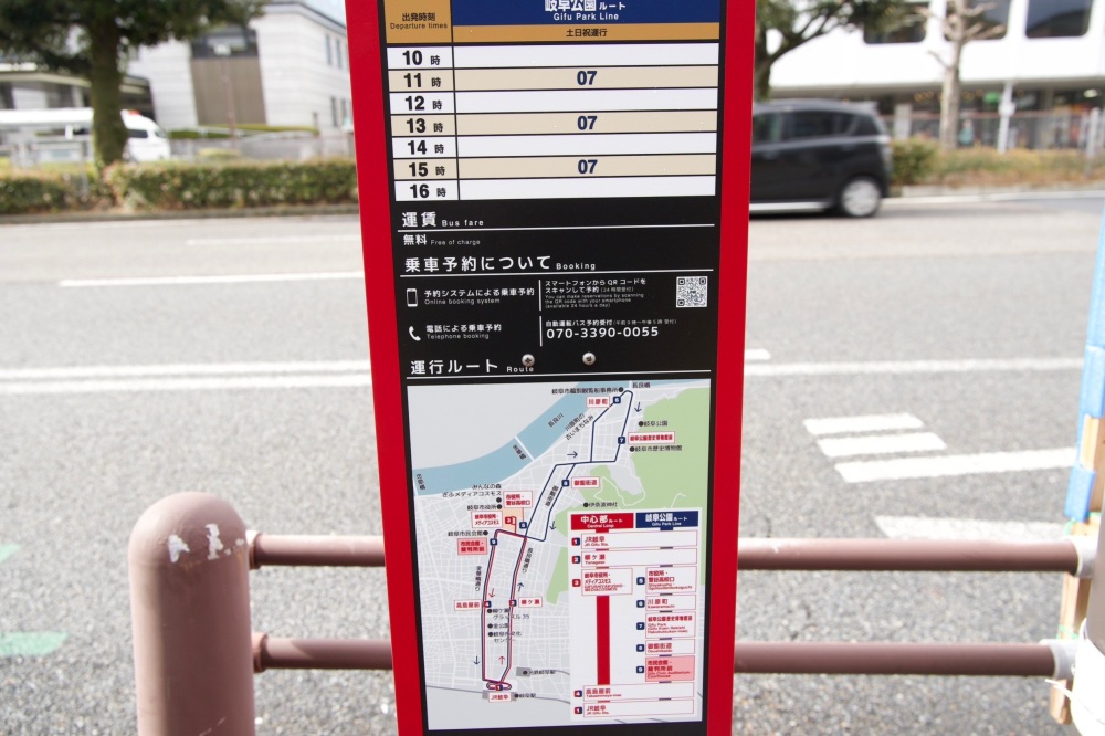 岐阜公園ルートは、土日祝のみの運行となりますので、ルートと時刻表を見てご予約くださいね。