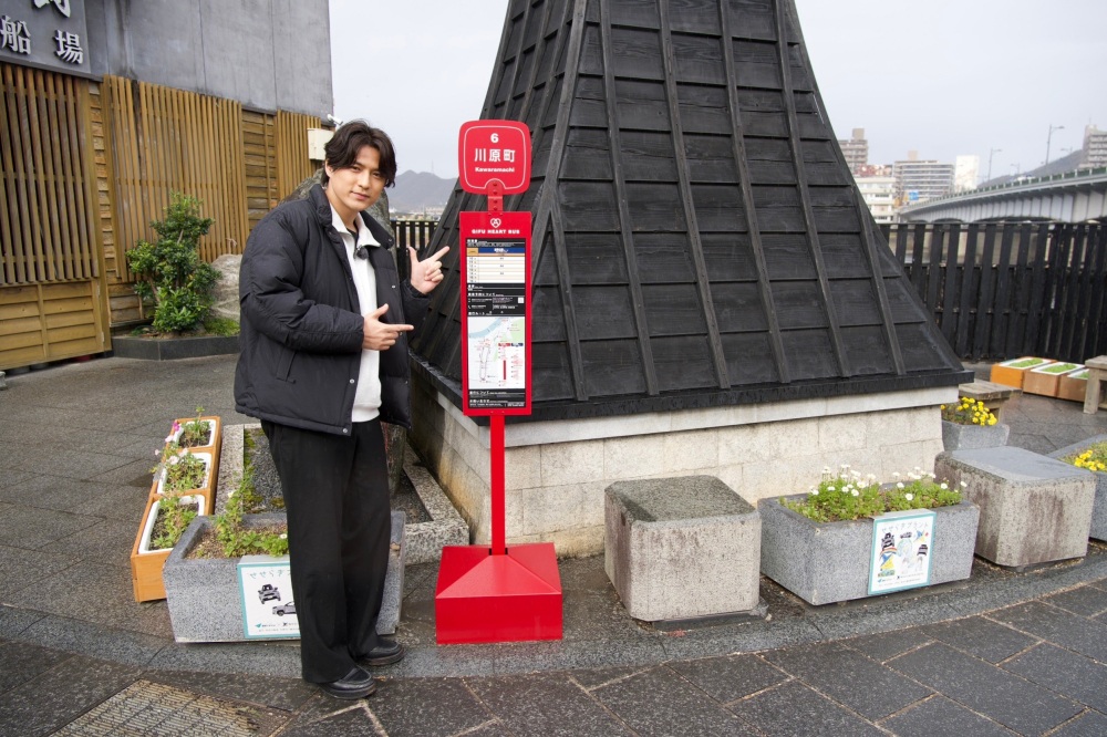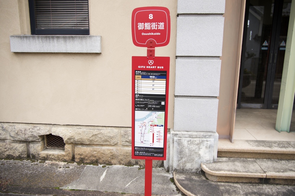 9ヵ所あるバス停には、「GIFU HEART BUS」専用のバス停があります。