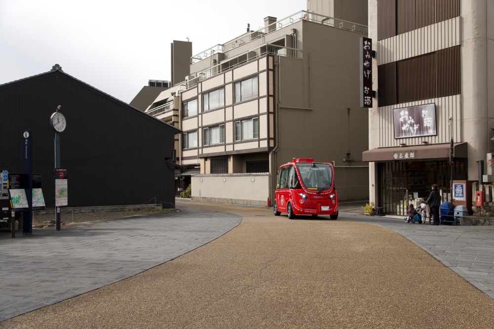 川原町や御鮨街道は特に細い道で、自転車や歩行者の方、すれ違う車もありますが、自動運転を楽しみながら、ぜひバスの中から見える景色を楽しんで欲しいです。