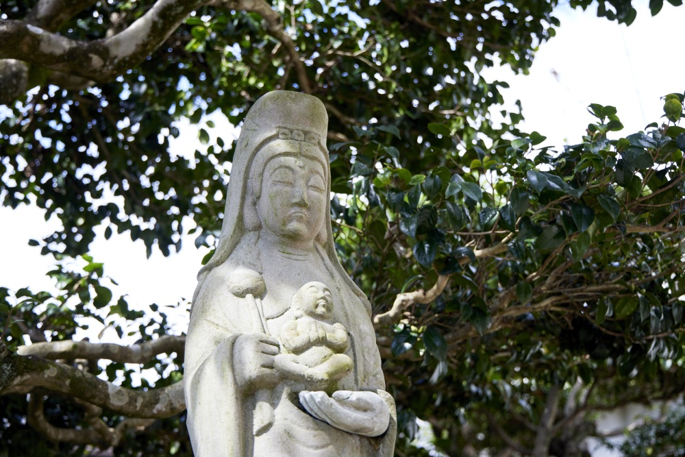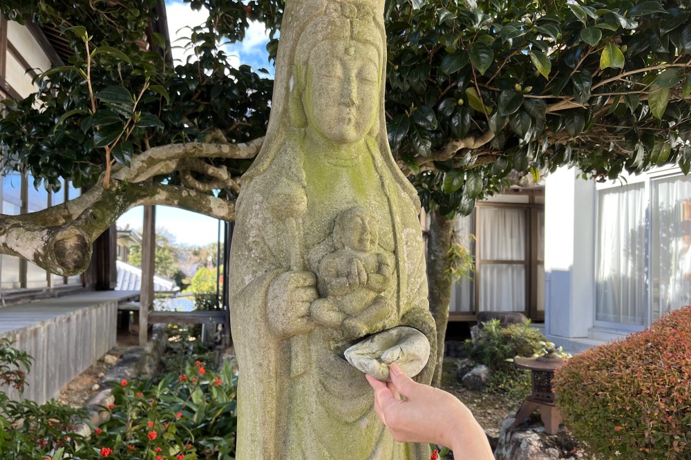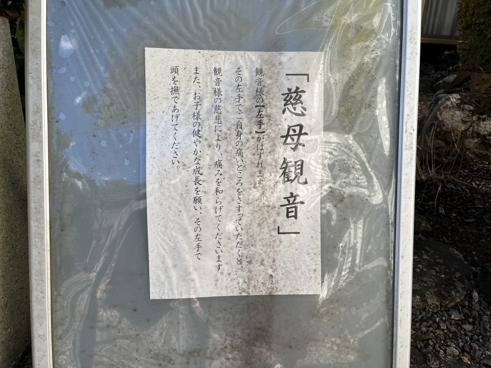 また、境内には慈母観音像もあり、左手が外れるようになっていています。この左手を取って痛い所をなでると、痛みが和らぐと言われています。
