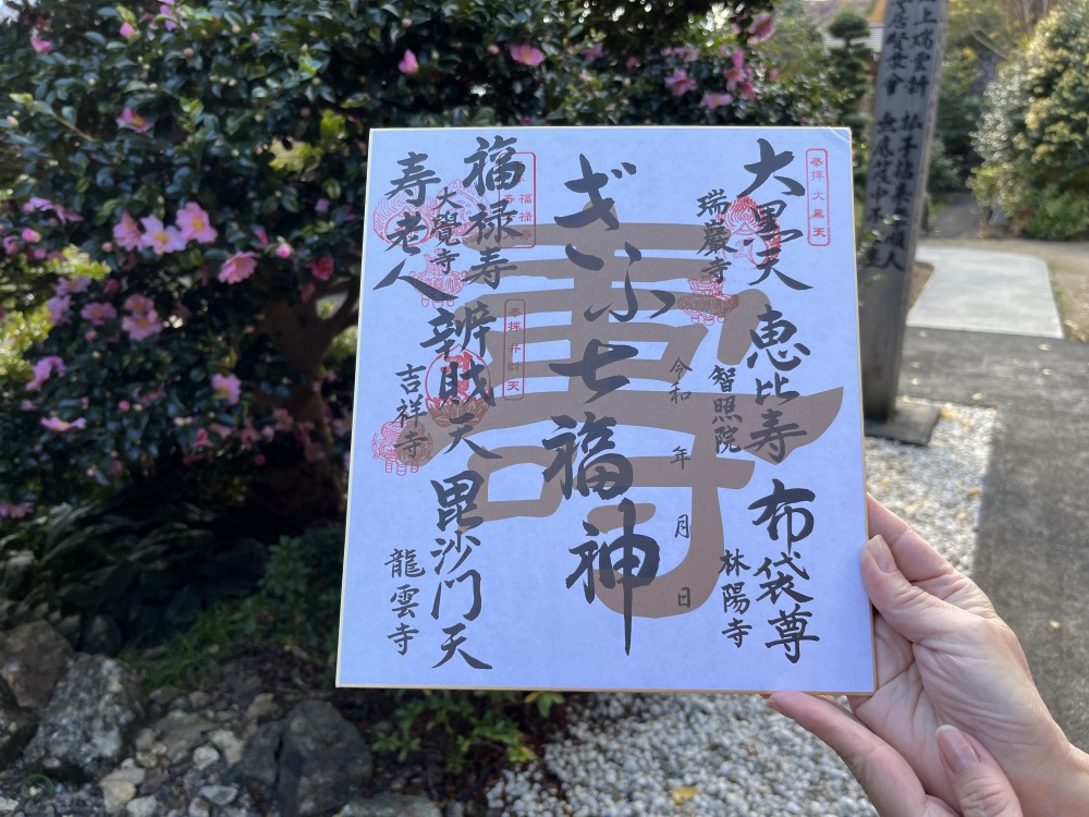 七福神ですが、1つのお寺に2柱あることから6ヶ寺を回ります。最後に色紙に日付を入れて完成です。