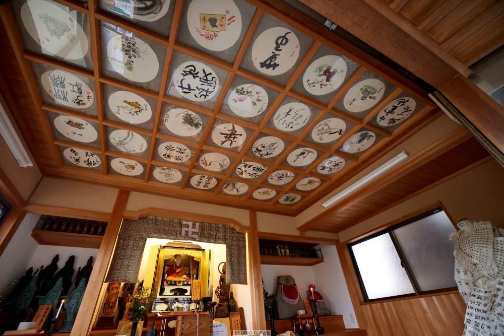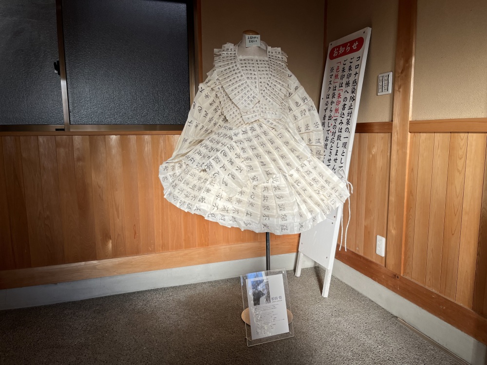 弘法堂には、絵天井や、美濃和紙で作られた写経ドレスも展示されています。