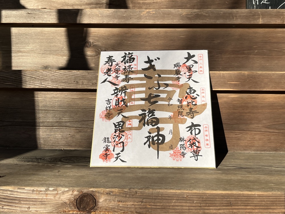 七福神めぐりは、通年お詣りできますが、こちらの色紙は令和6年のお正月バージョンです。