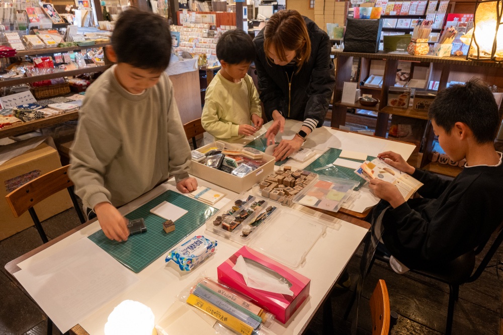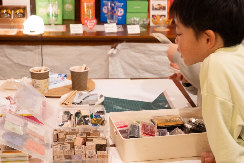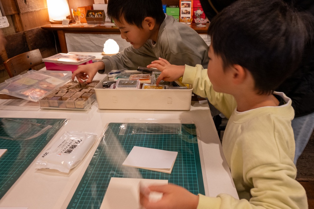 手作り体験は小さいお子さんでも楽しめます。4歳の三男も綺麗にスタンプを押していました。
