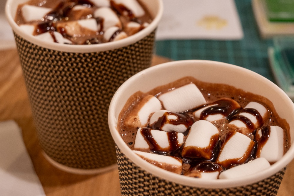 おっと、カフェの空気感だけではなく本当にカフェメニューがありますね。外は寒かったので、マシュマロ入りのホットココアを頂いてから手作り体験に入りました。
