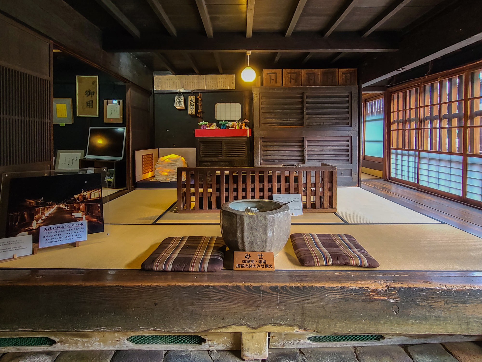 玄関に入ると和紙問屋の商いに使われていた帳場があります。往時の雰囲気がそのままで、まるで時代劇のセットのようでした。