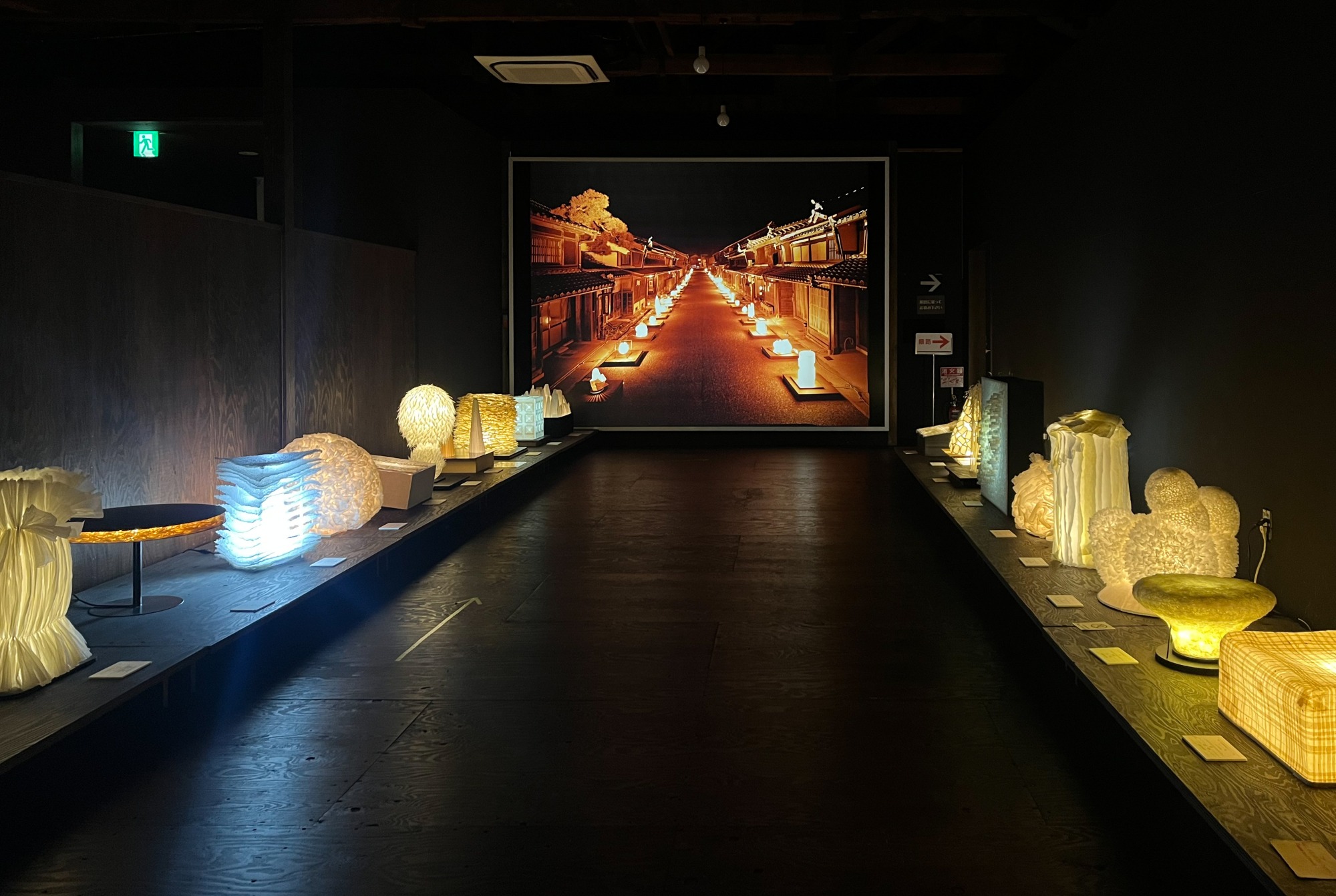 2階では毎年秋に開催される「美濃和紙あかりアート展」が再現されていました。うだつの上がる町並みを照らすあかりが幻想的で、次回は実際にイベントを見に行きたいです。