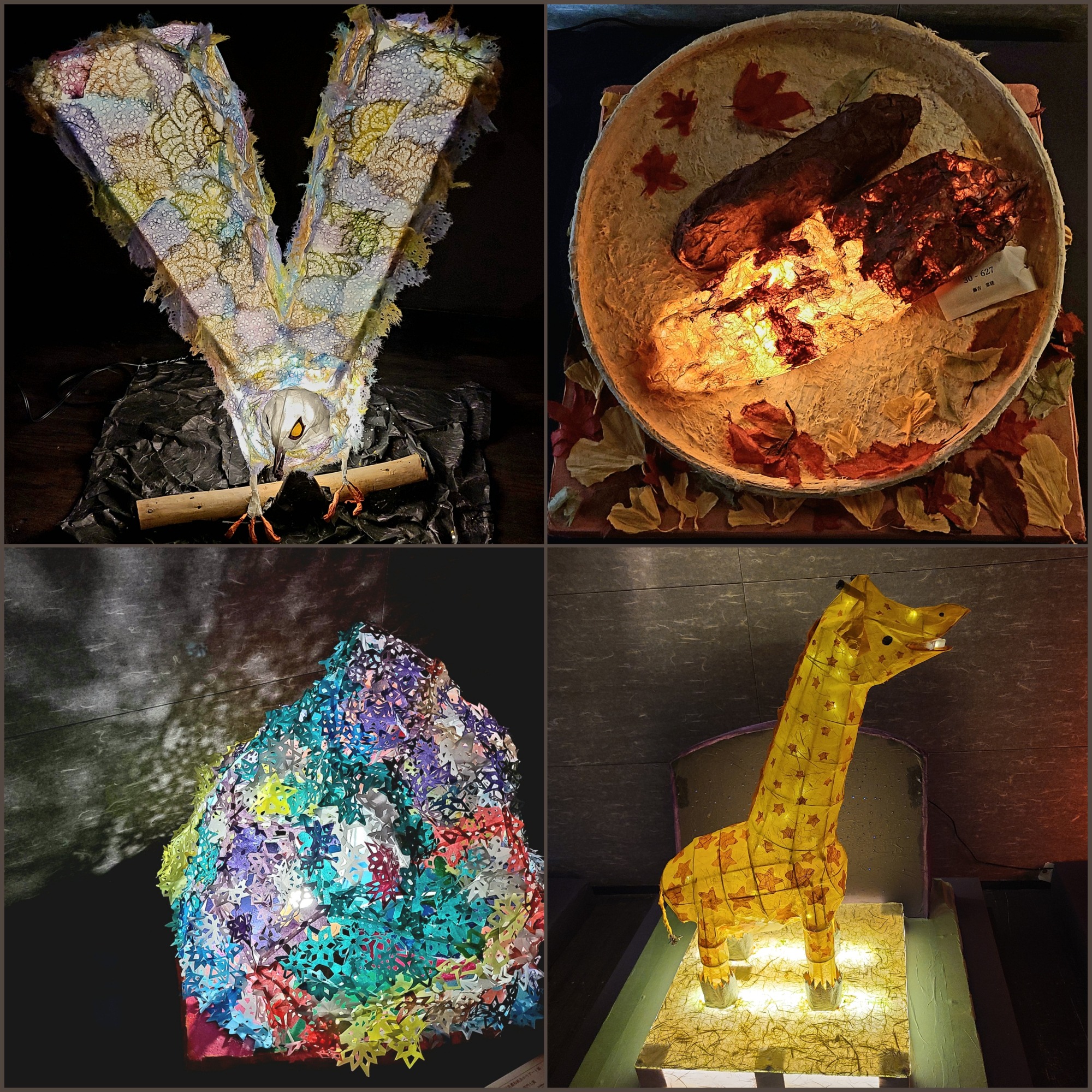 「美濃和紙あかりアート展」受賞作品の一部です。どの作品も見応えがあり、繊細さや美しさに感動します。