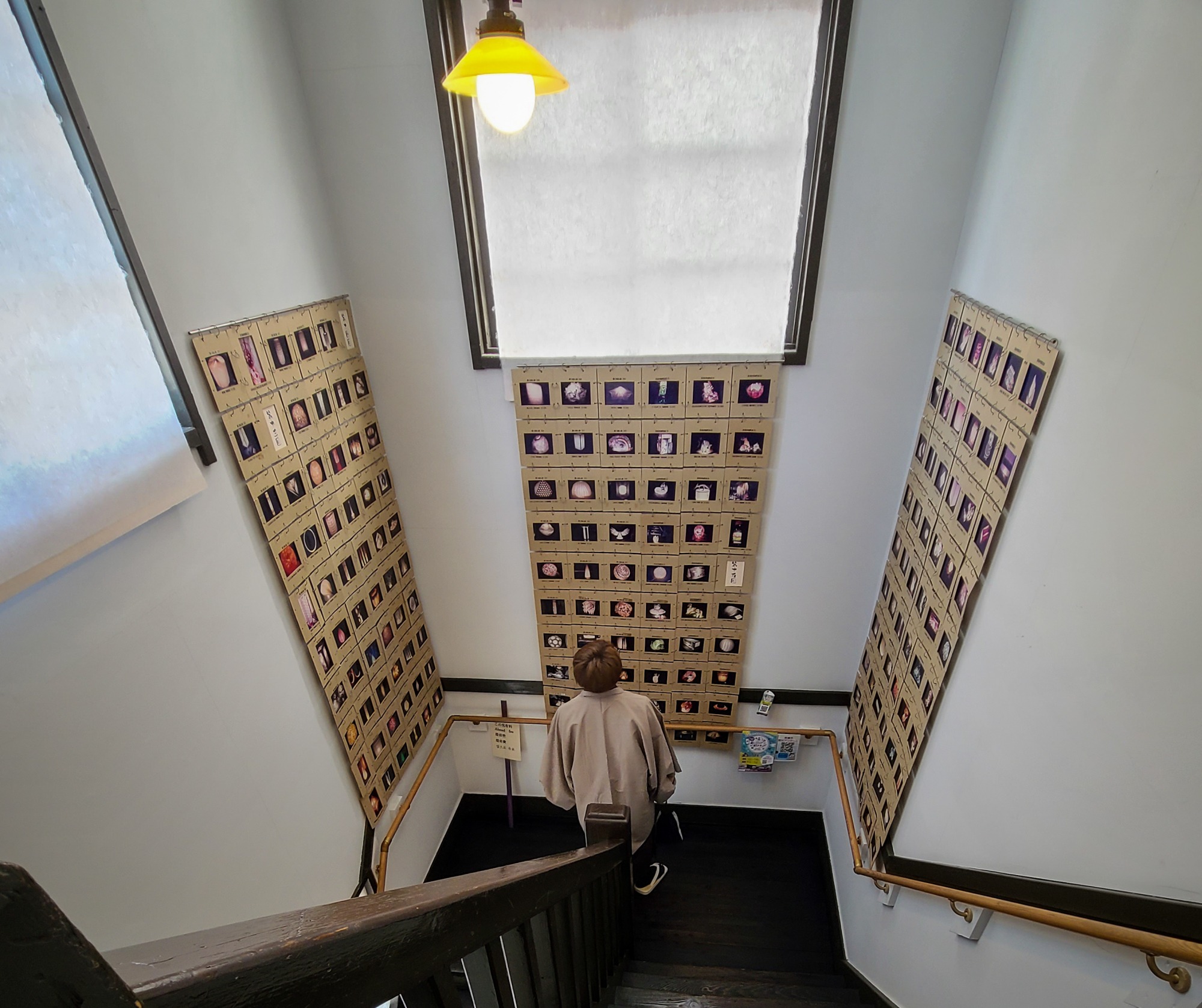 レトロな雰囲気が素敵な階段。こちらには過去に展示された作品の写真が飾られています。