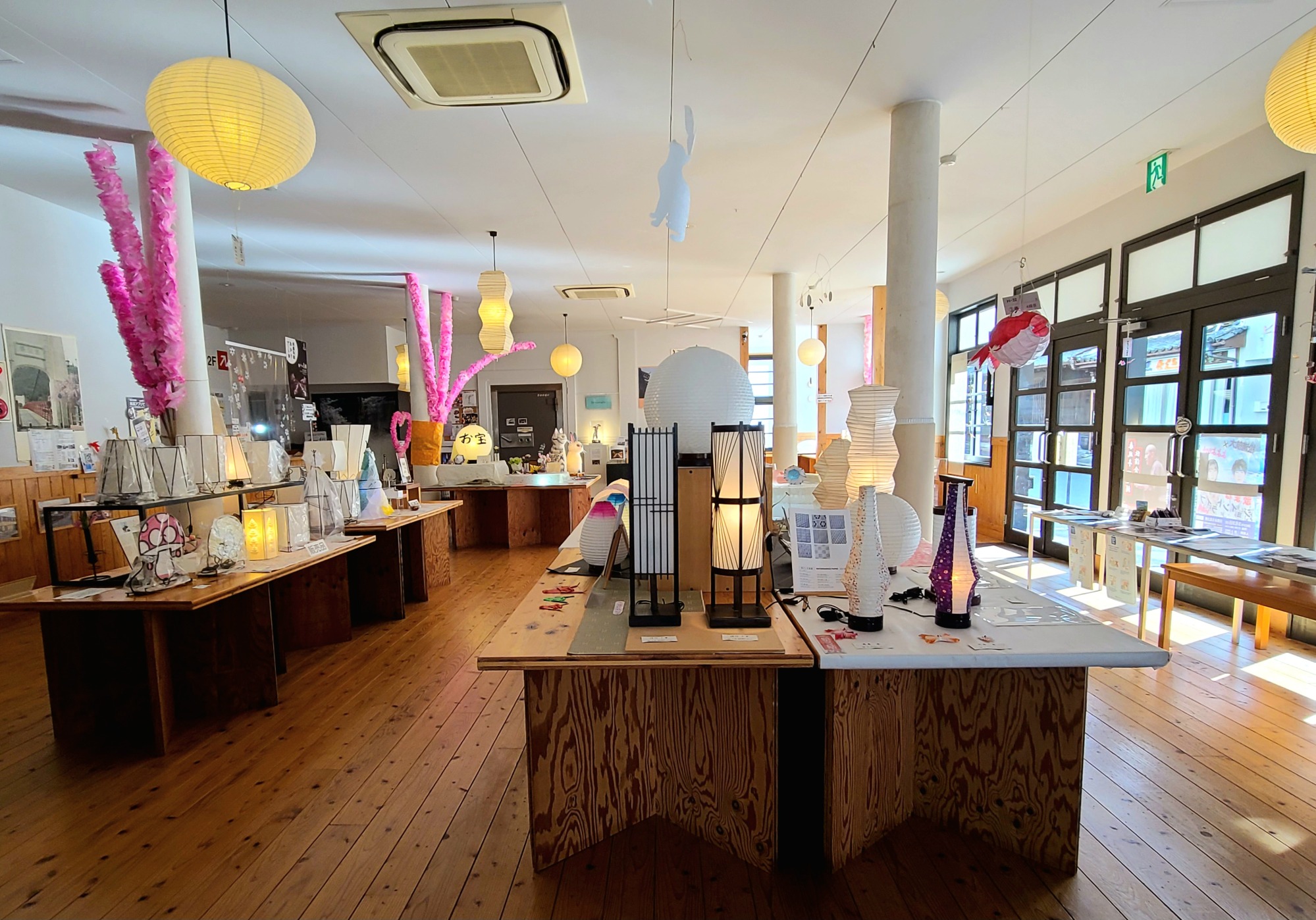 1階は美濃和紙のあかりアート製品の販売を行うショップと無料休憩所になっています。