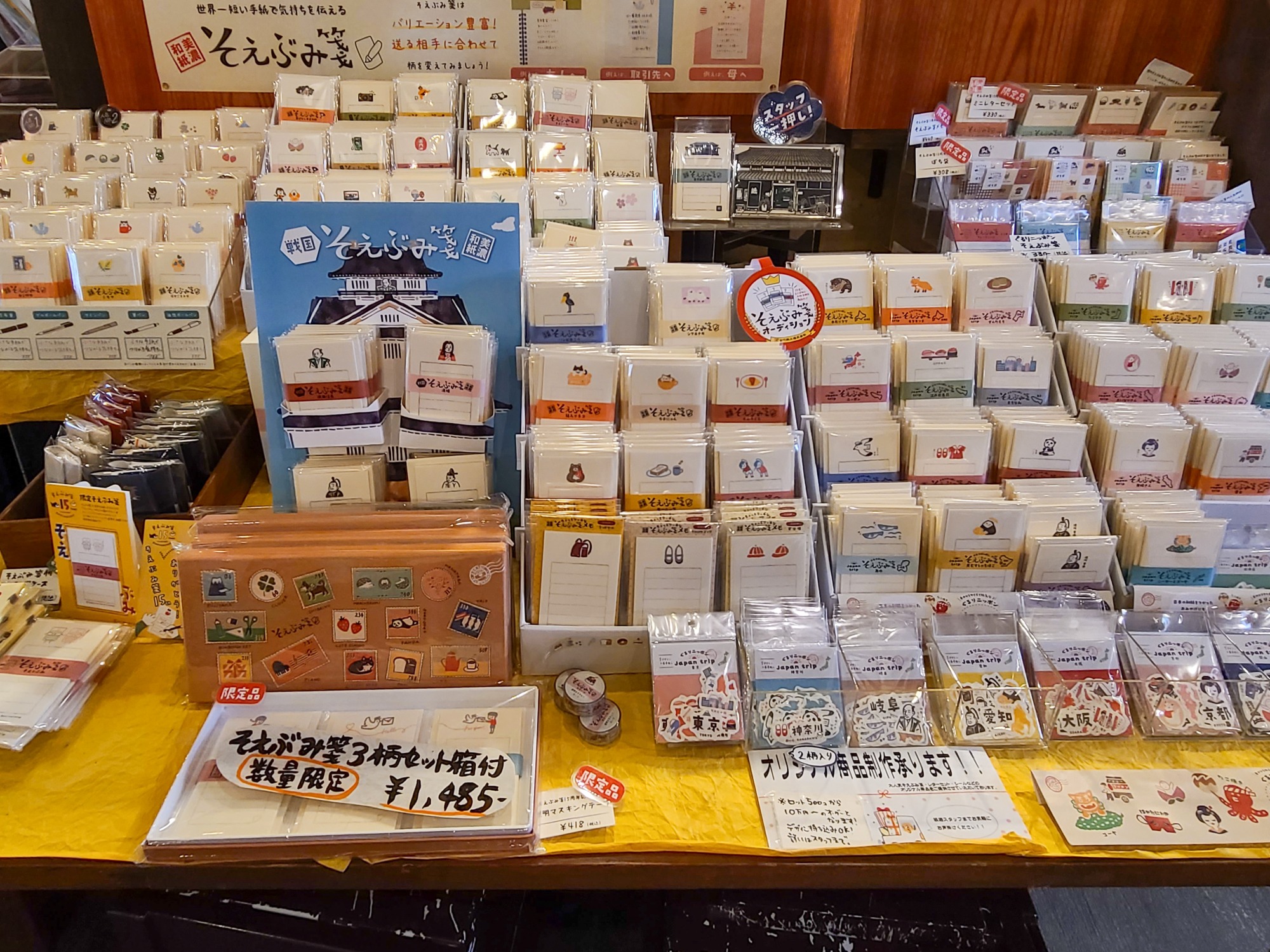 季節をモチーフにしたものから岐阜県や美濃市、うだつの上がる町並みをモチーフにした商品まで種類豊富な「そえぶみ箋(せん)」。