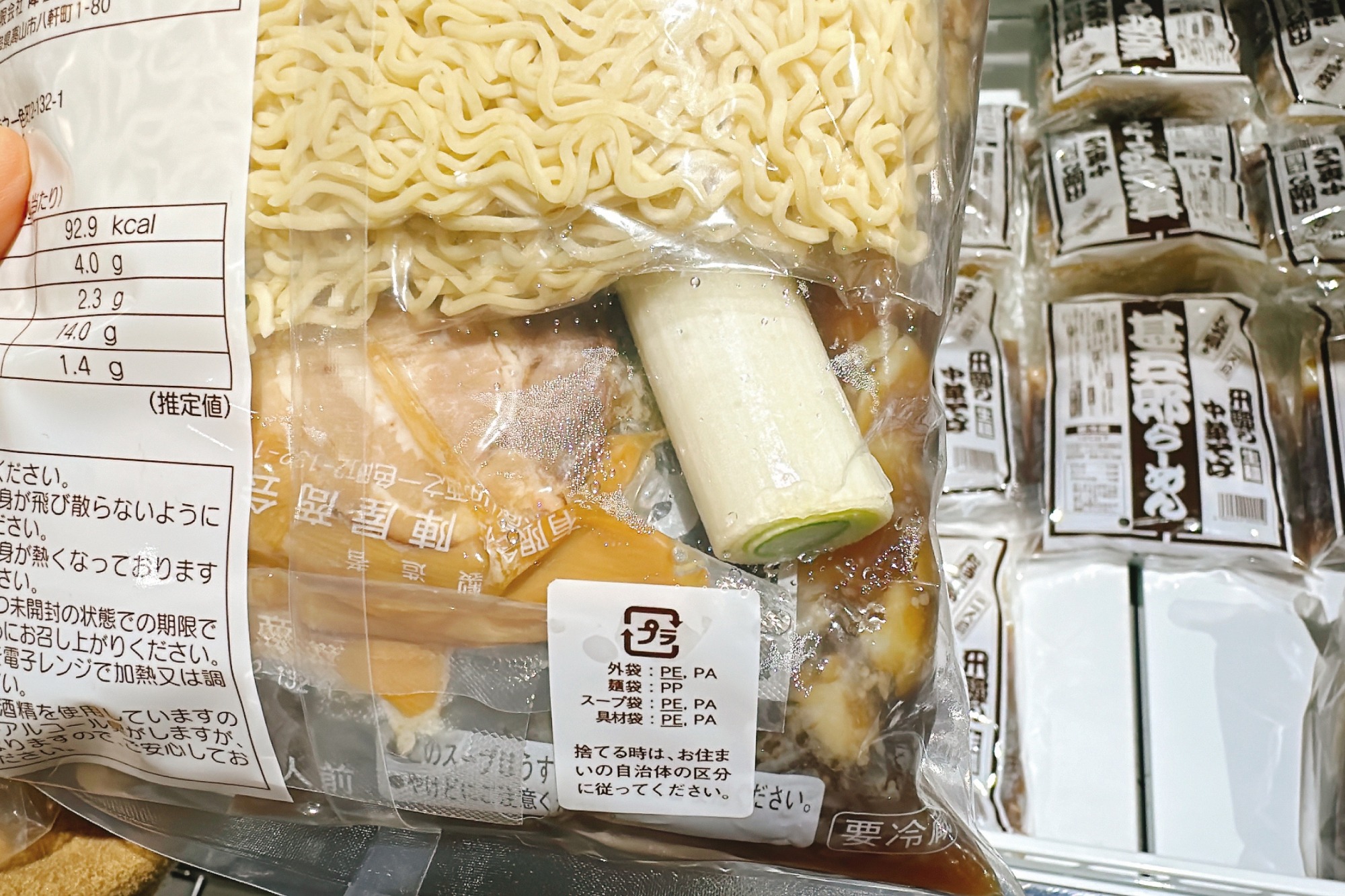 ○スープ…豚骨や鶏ガラなどの出汁が効いた濃いめの醤油ベースで、1人前ずつのストレートスープが袋詰めされたものが2袋。