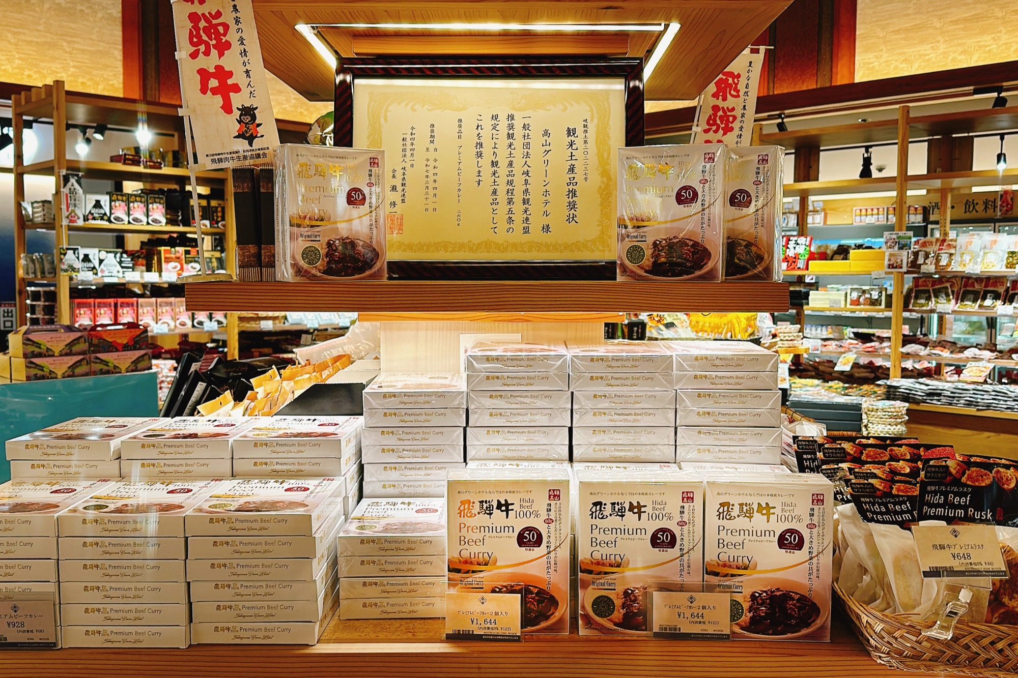 「飛騨物産館」は、高山グリーンホテルに併設されている広いお土産物館です。