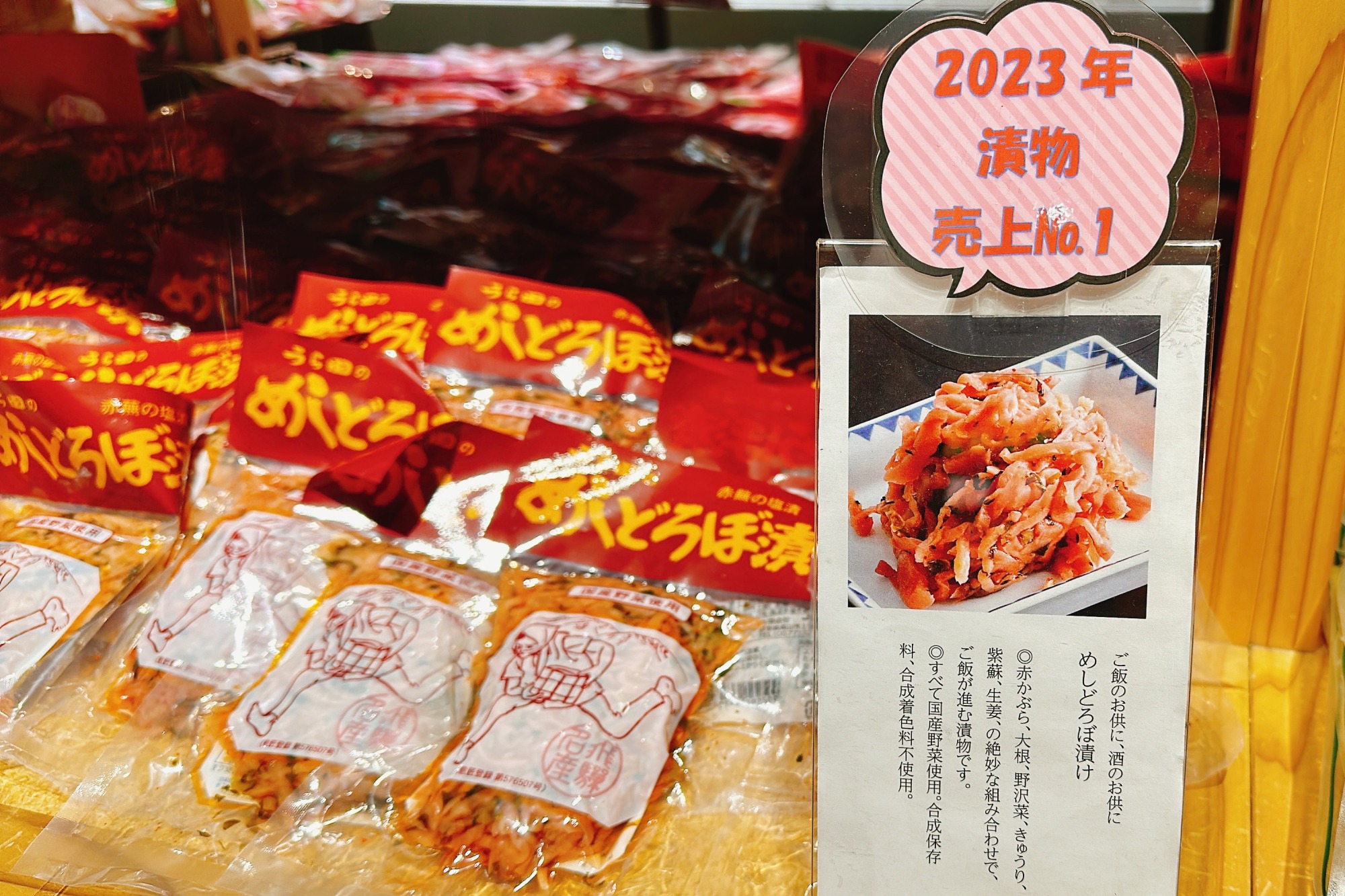 「めしどろぼ漬」は、飛騨地方に古くから伝わる赤かぶらの漬物を、うら田独自の製法で加工、味付けをした漬物です。