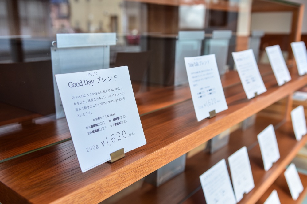 当時はまだ珍しかったスペシャルティコーヒー豆専門店。店頭には常時、ブレンドが4種類、単一農園のシングルオリジンコーヒー豆は10〜15種類ほどがラインナップ。一つひとつの豆の特徴を捉えながら、常に新鮮なコーヒーを味わってもらえるよう、少量ずつこまめに焙煎していらっしゃいます。