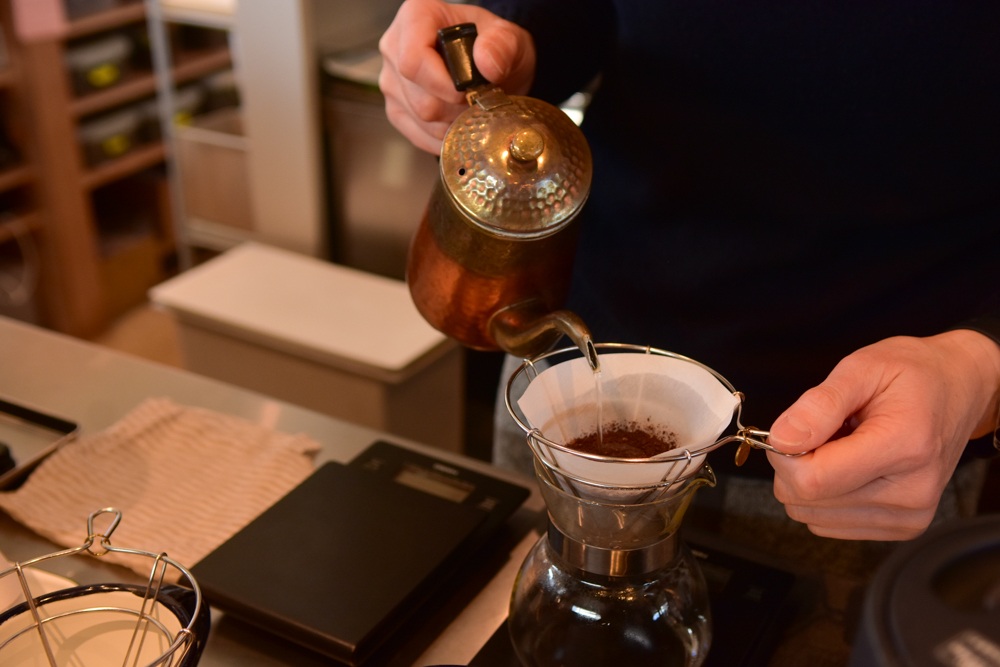 コーヒーをオーダーするとその場で淹れてくれて、美味しい淹れ方や豆の選び方などを丁寧に教えてもらえるのも嬉しいポイント。豆を買うついでに、コーヒーを一杯いただき杉江さんとコーヒー談義をするのもありです。