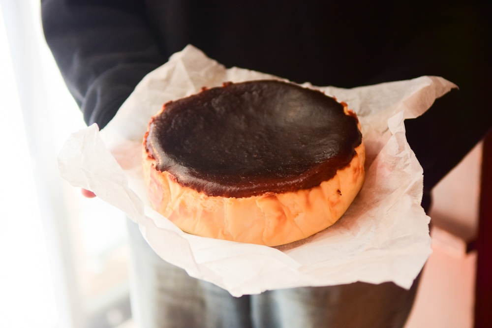 本場スペインの味を再現したという「バスクチーズケーキ」も人気。クリームチーズと砂糖がたっぷり入り、生地の甘さと表面のこげ目の苦味との接妙なバランスが表現された逸品です。