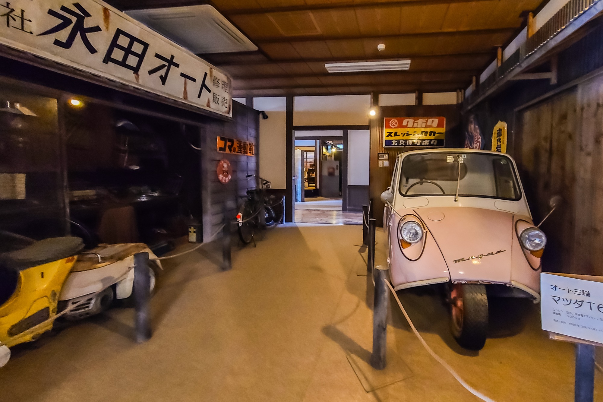三輪自動車やスクーターなど、レトロで可愛い乗り物が展示されています。