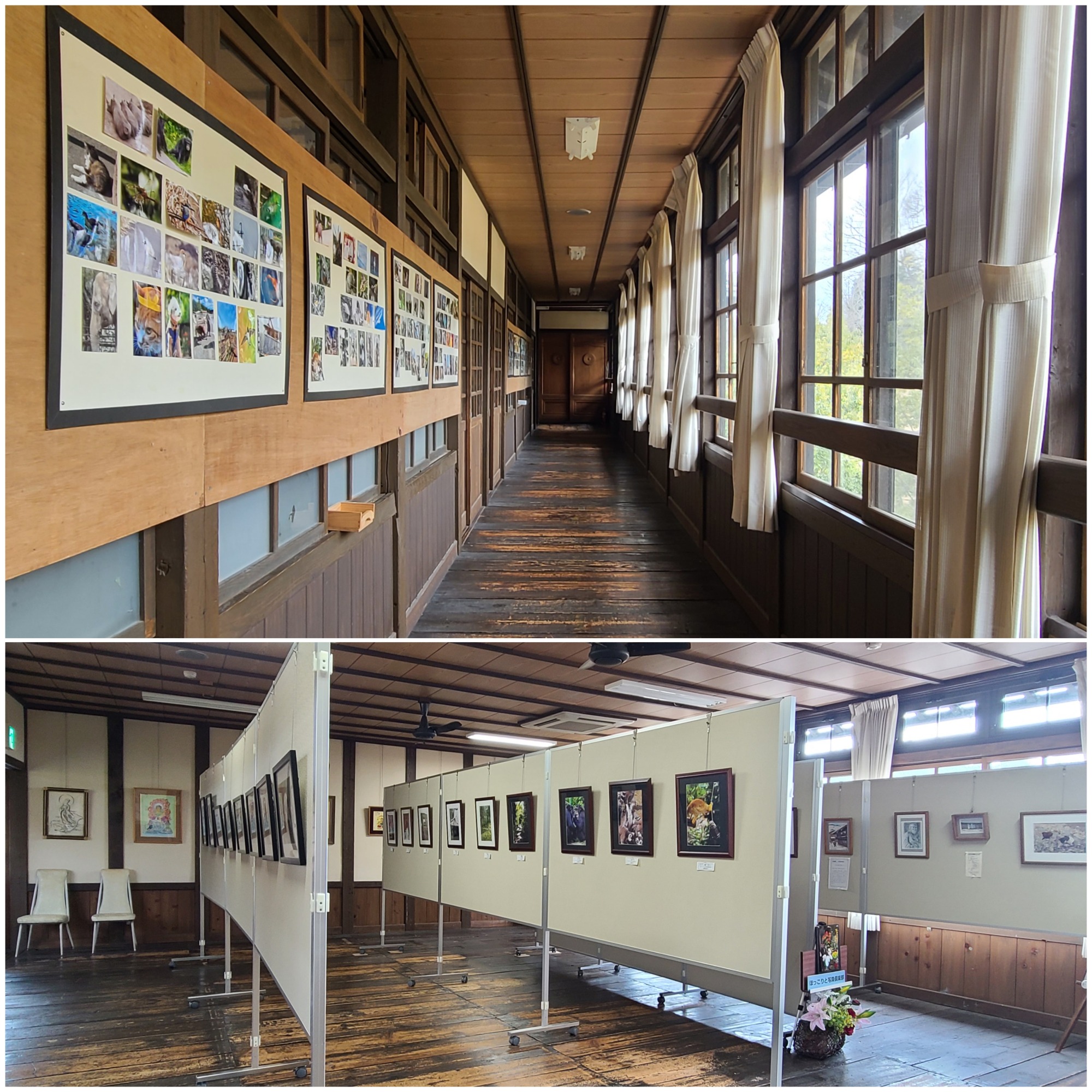 2階の廊下や教室は展示ブースになっていて、地域の方々の写真や絵画などの作品が数多く展示されていました。